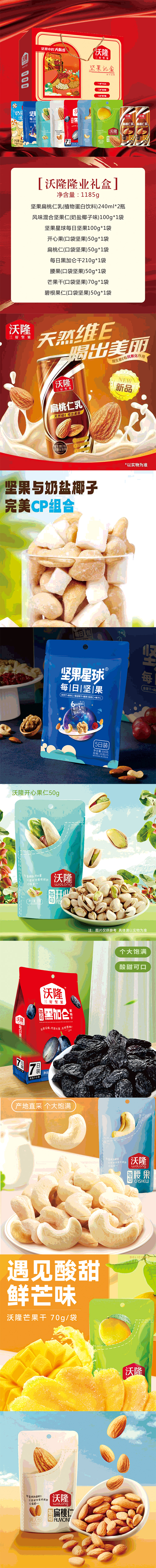 商品名称:沃隆隆业坚果零食礼盒1185g单位:盒 枫叶色 1185g