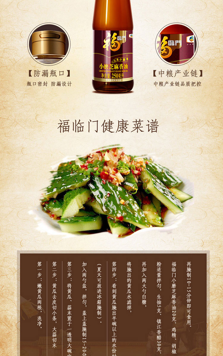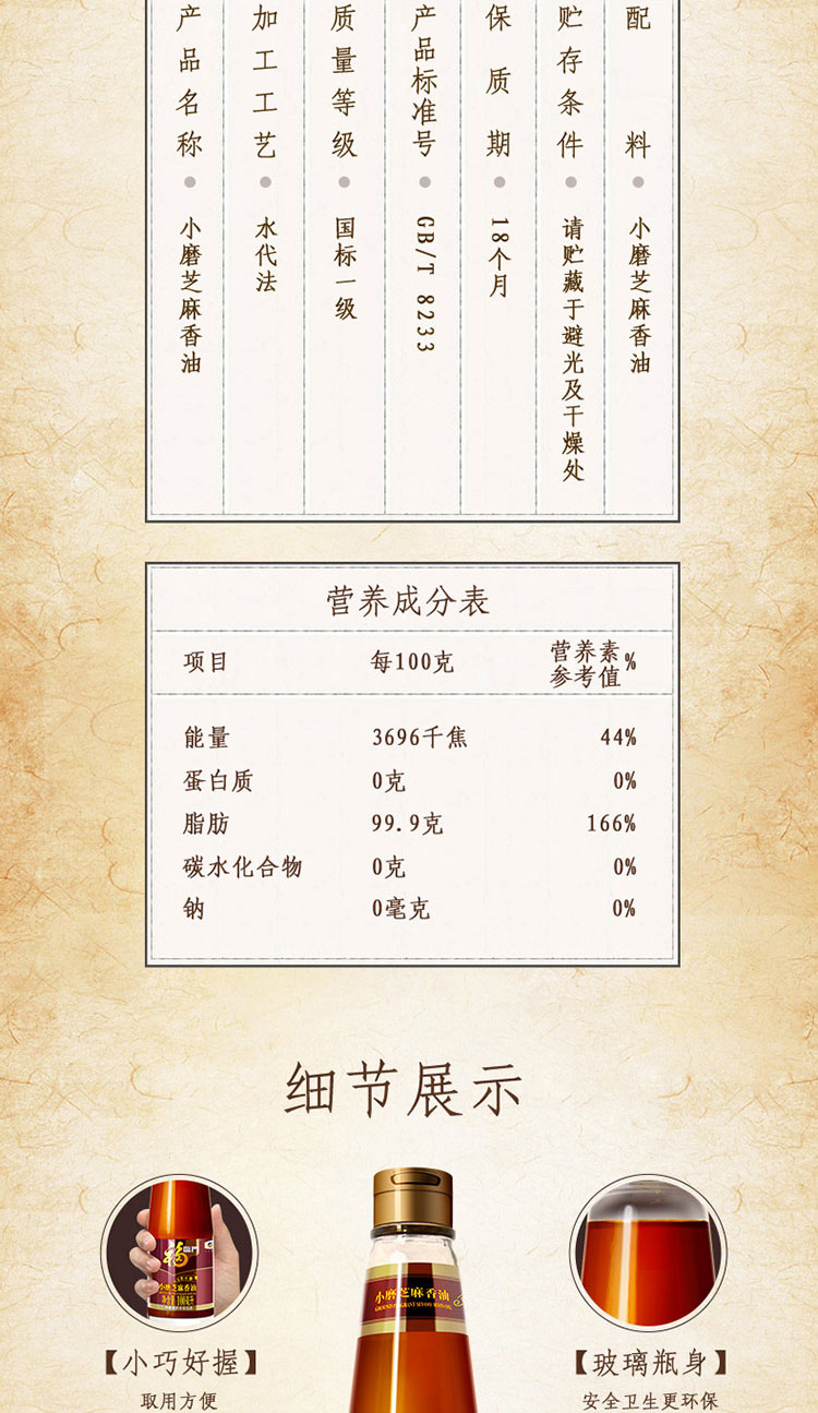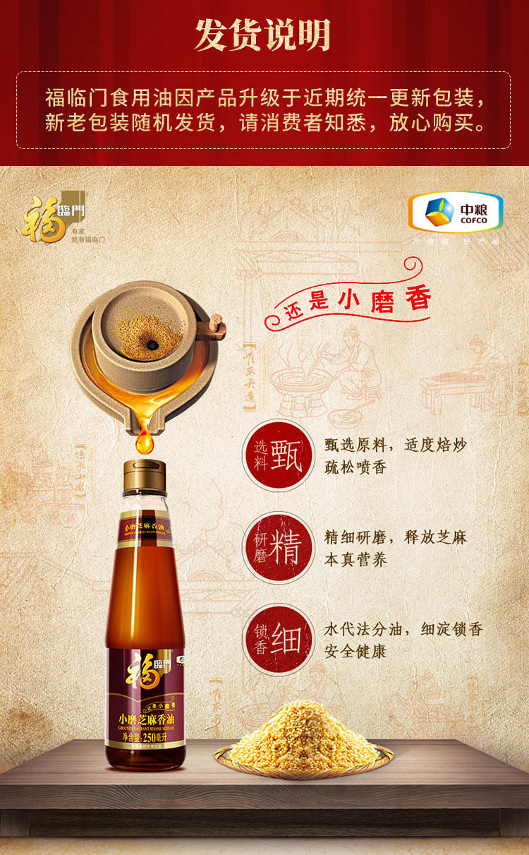 商品名称:福临门一级小磨香油250ml*2瓶/组 混色