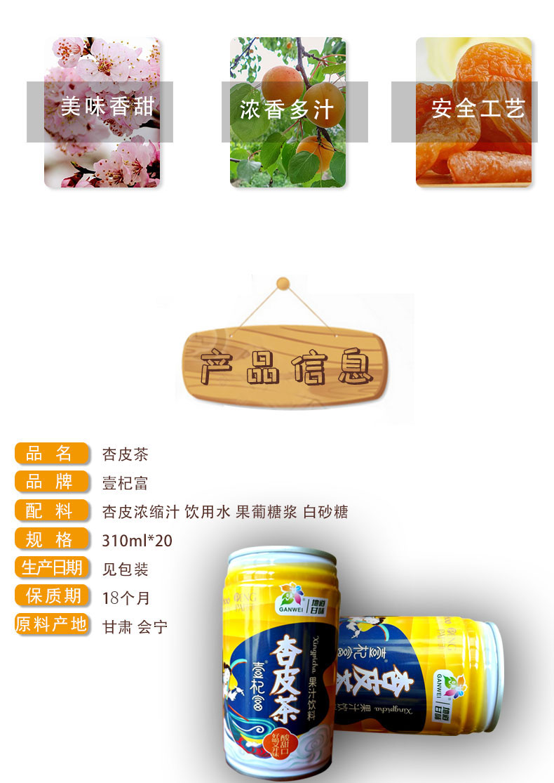 商品名称:壹杞富杏皮茶310ml*20瓶/箱 奶茶杏