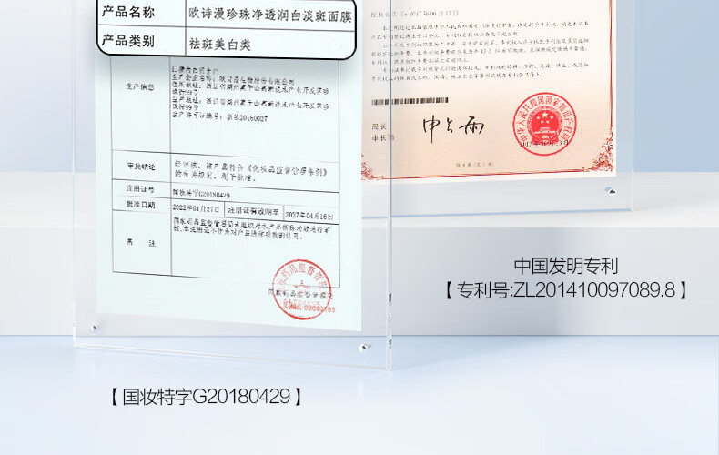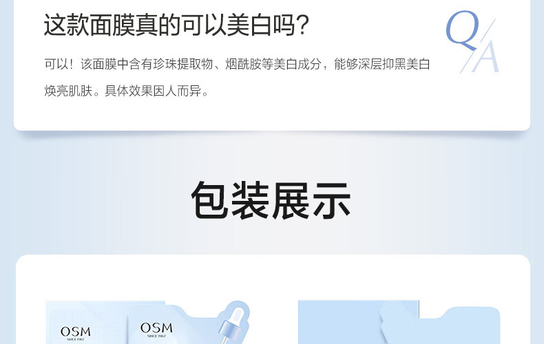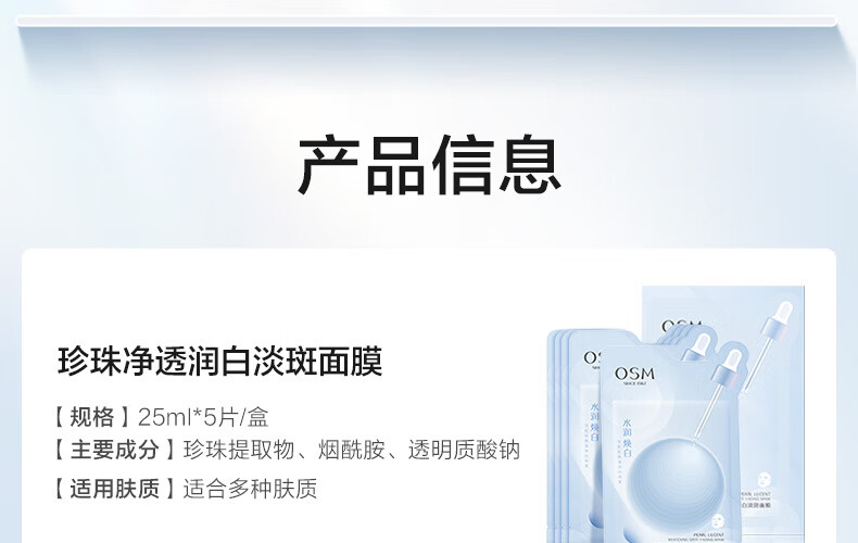 商品名称:欧诗漫珍珠净透润白淡斑面膜25ml*5片(单位:盒) 1盒