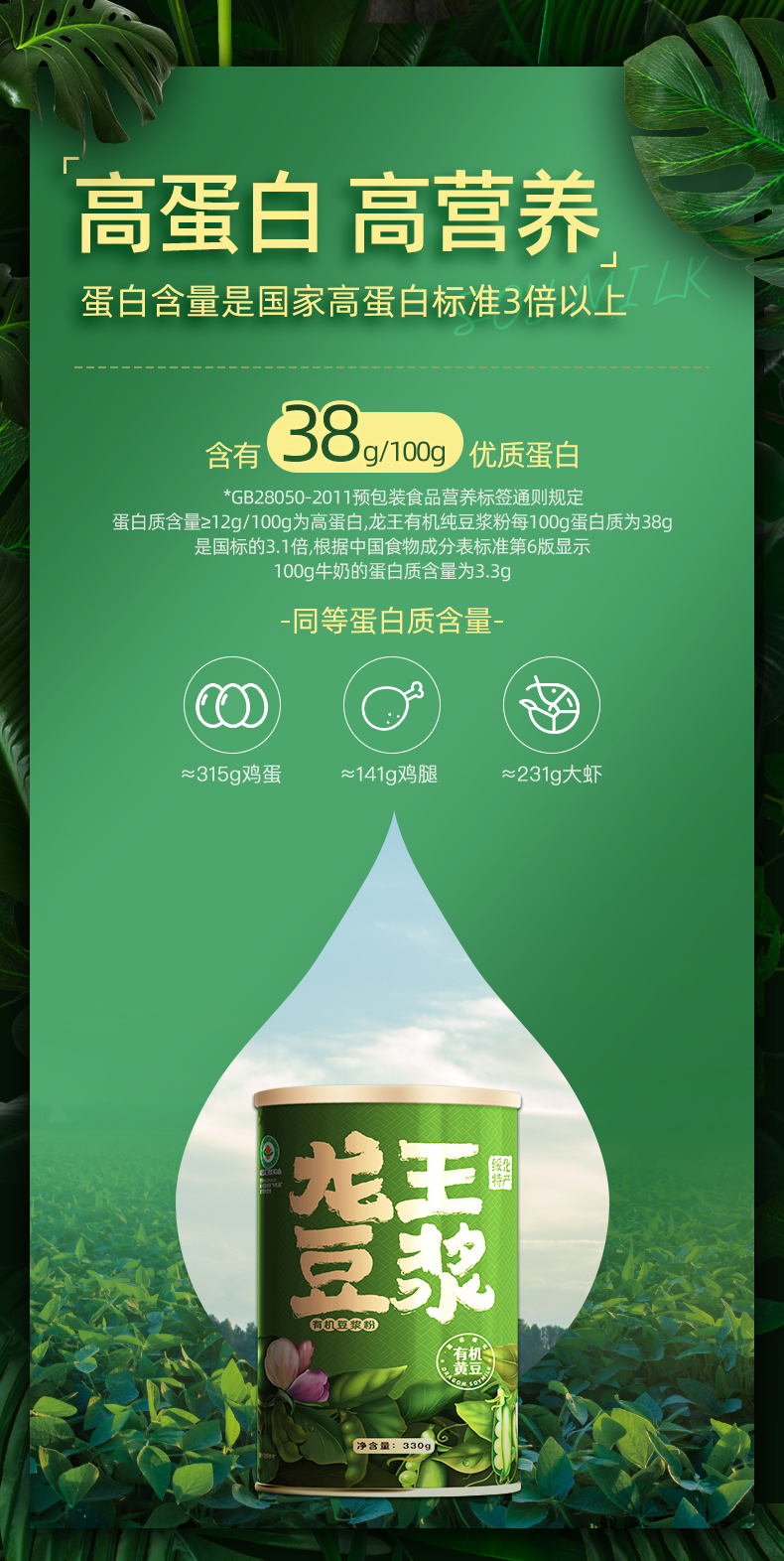 商品名称:龙王有机黄豆浆粉罐装330g 纯豆浆粉早餐冲饮绿色食品无添加糖 330g*1罐 原味
