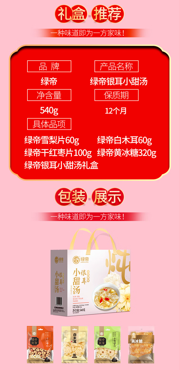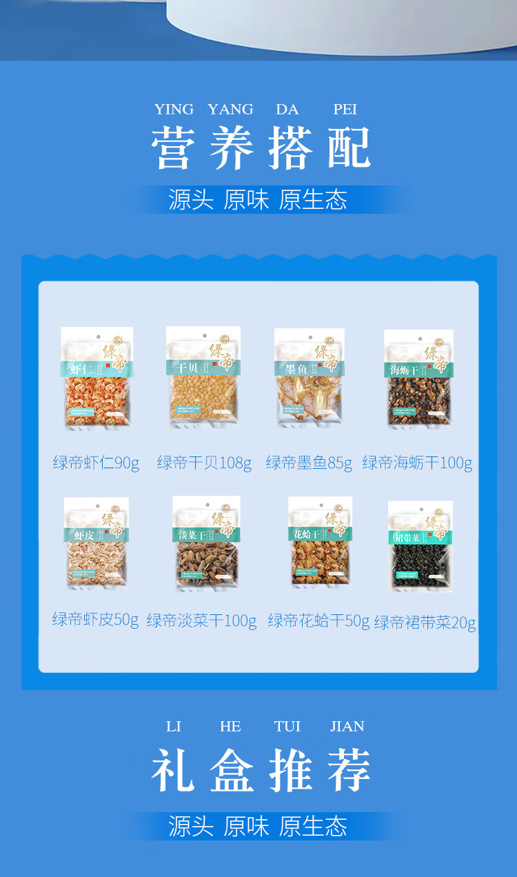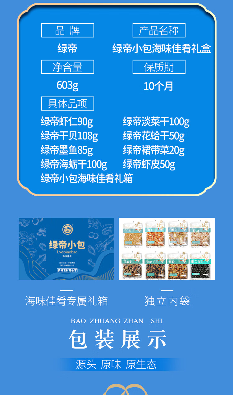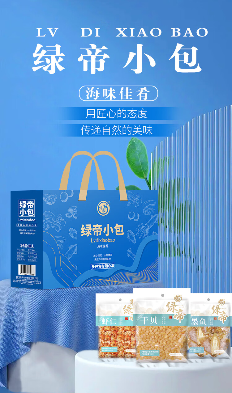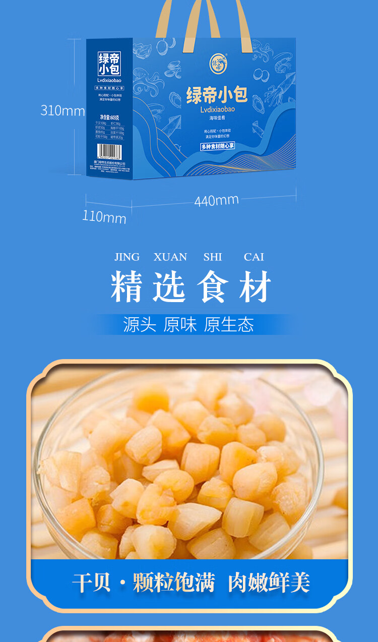 商品名称:绿帝 海味佳肴海产品干货礼盒603g+银耳小甜汤礼盒540g 宝石蓝