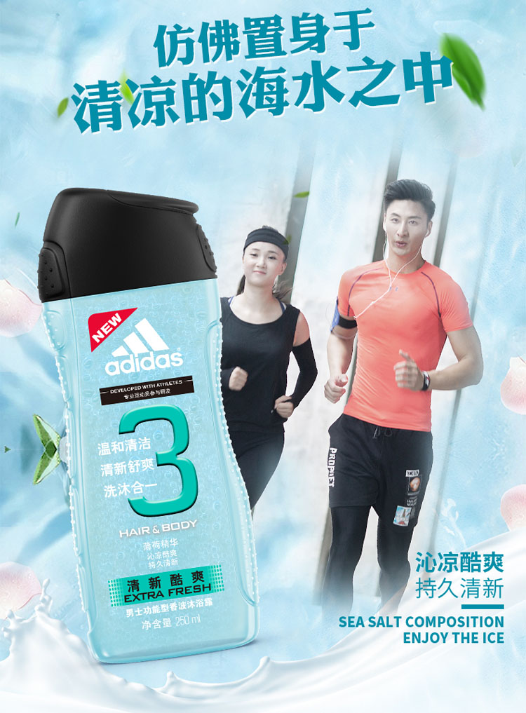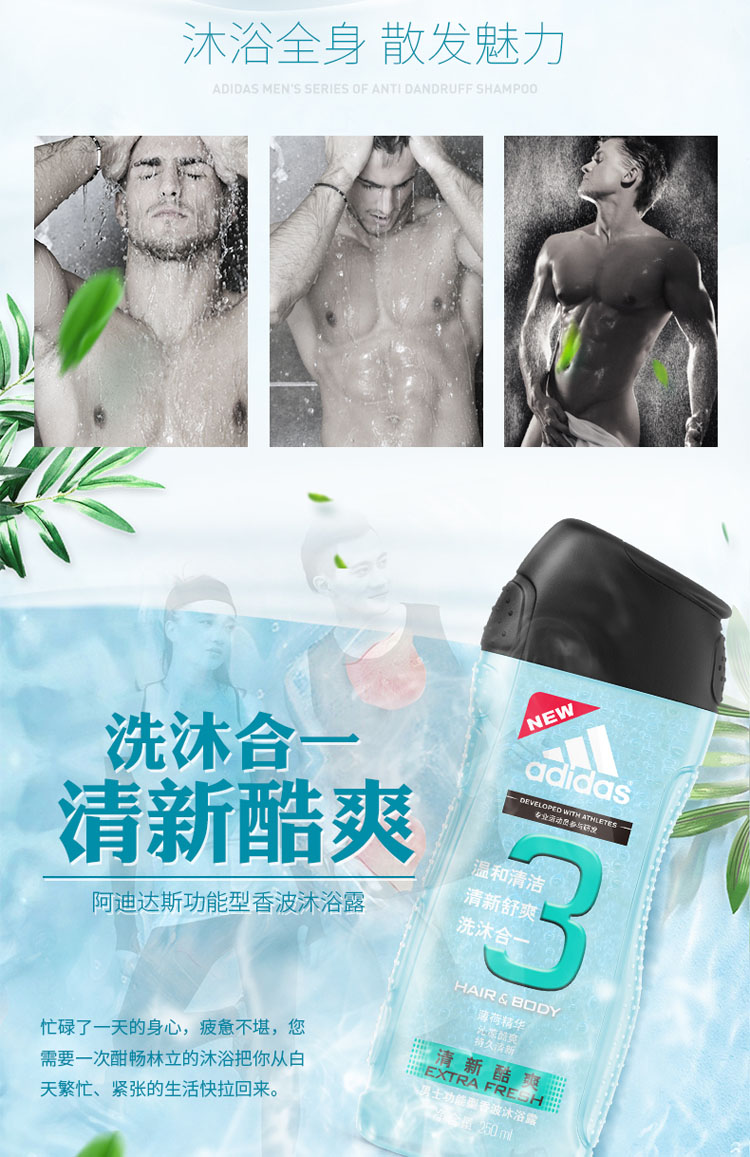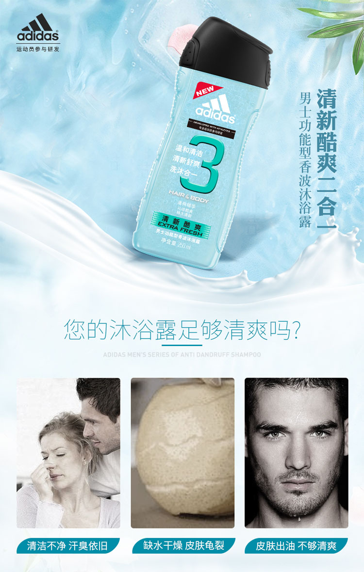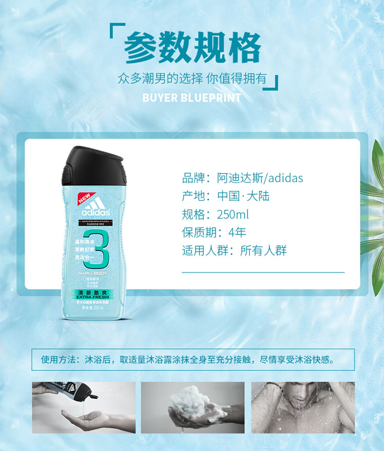 商品名称:阿迪达斯男士功能型香波沐浴露250ml 幻影蓝