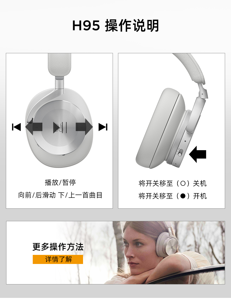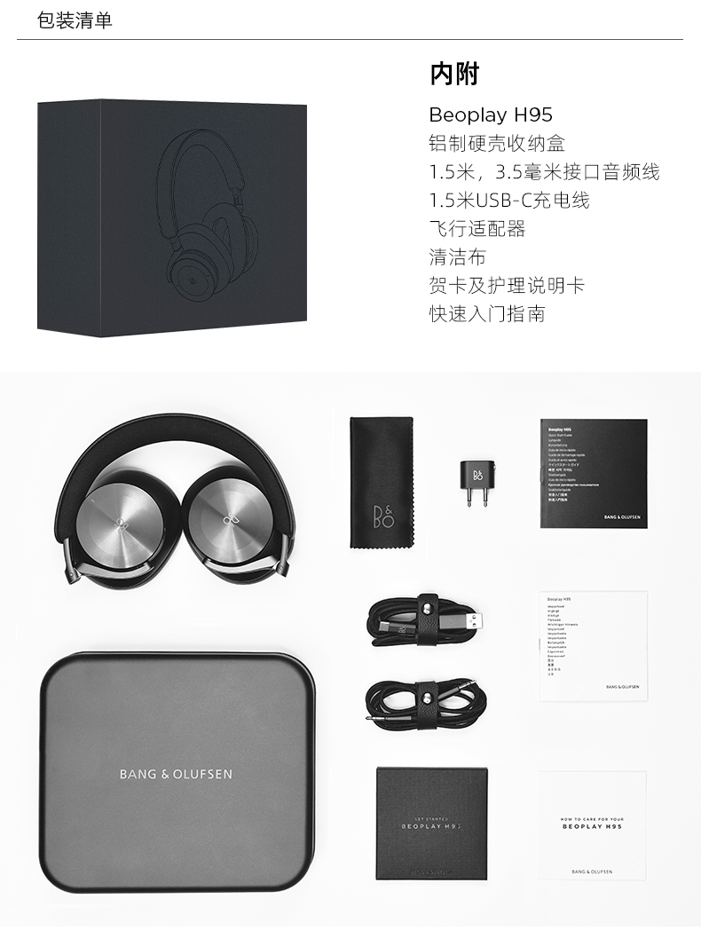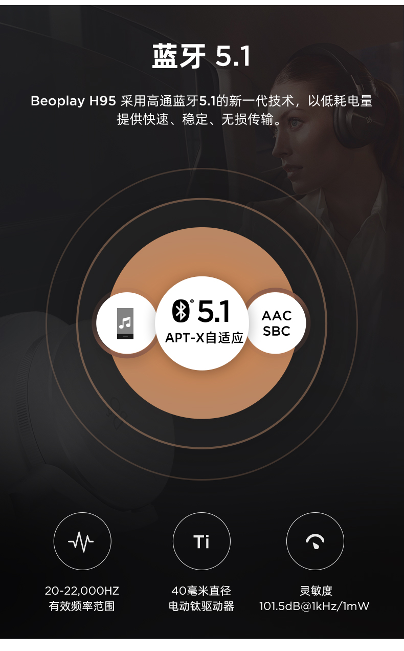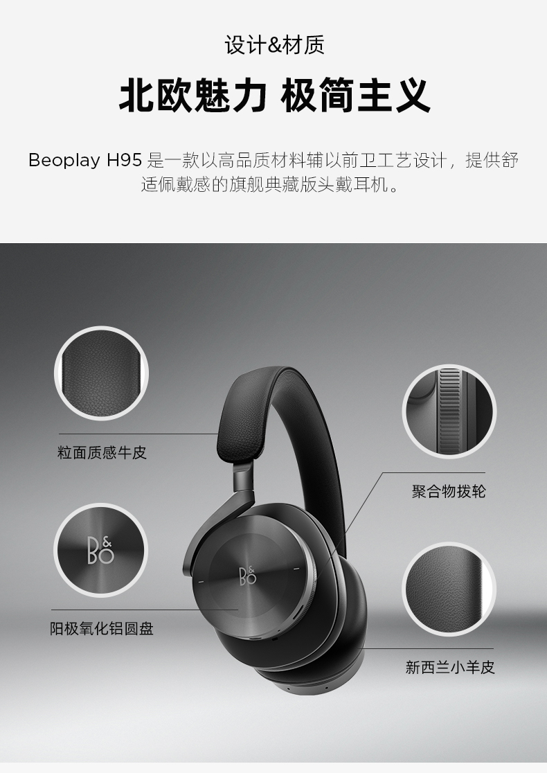 商品名称:B&O beoplay H95 头戴式蓝牙无线耳机 主动降噪音乐耳机/耳麦 丹麦bo包耳式游戏耳机 黑色 黑色
