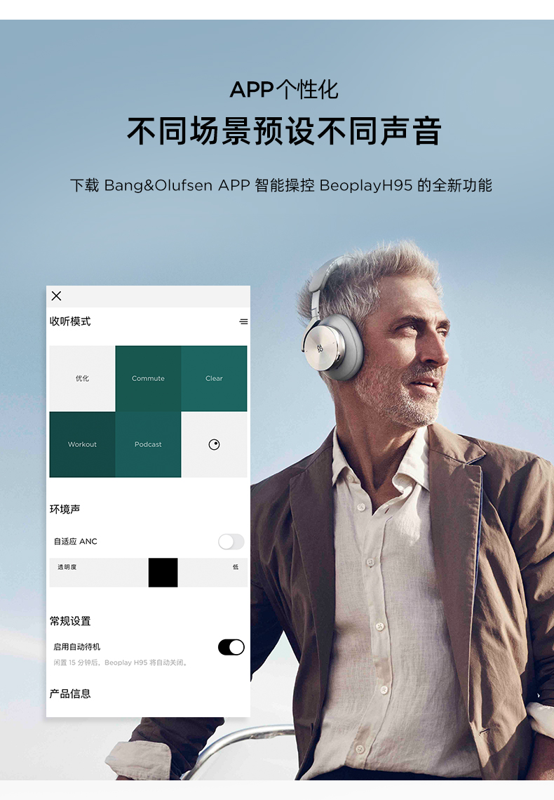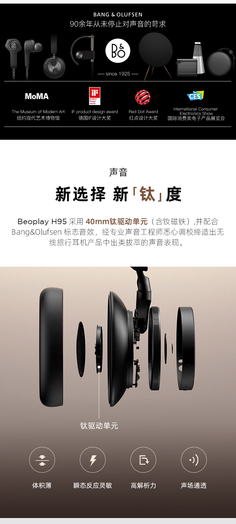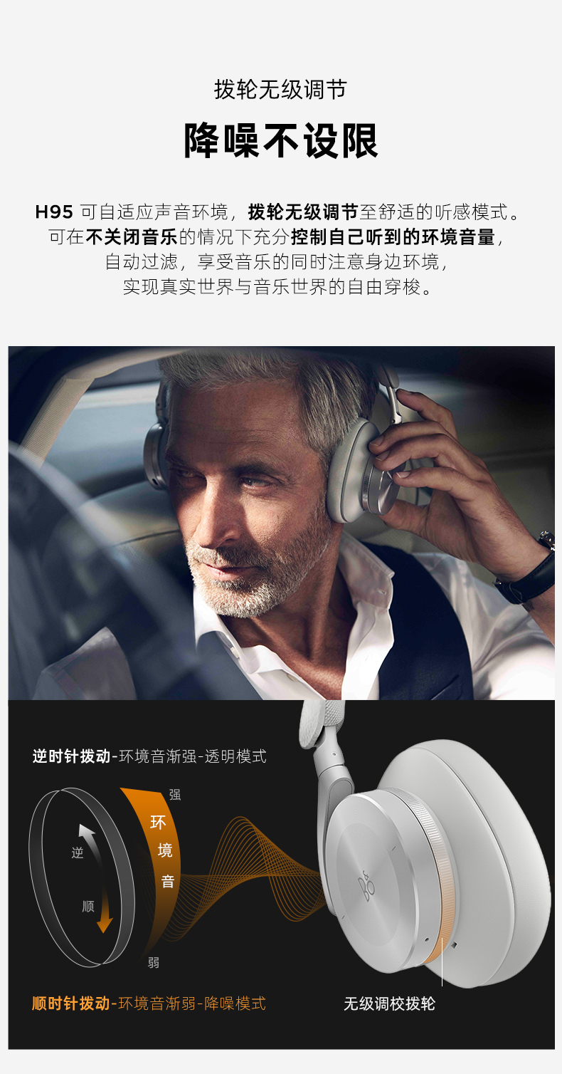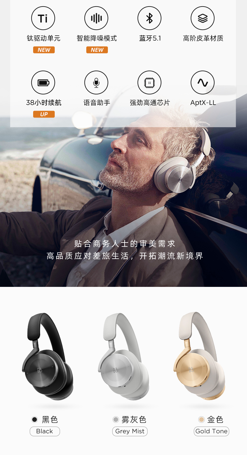 商品名称:B&O beoplay H95 头戴式蓝牙无线耳机 主动降噪音乐耳机/耳麦 丹麦bo包耳式游戏耳机 黑色 黑色