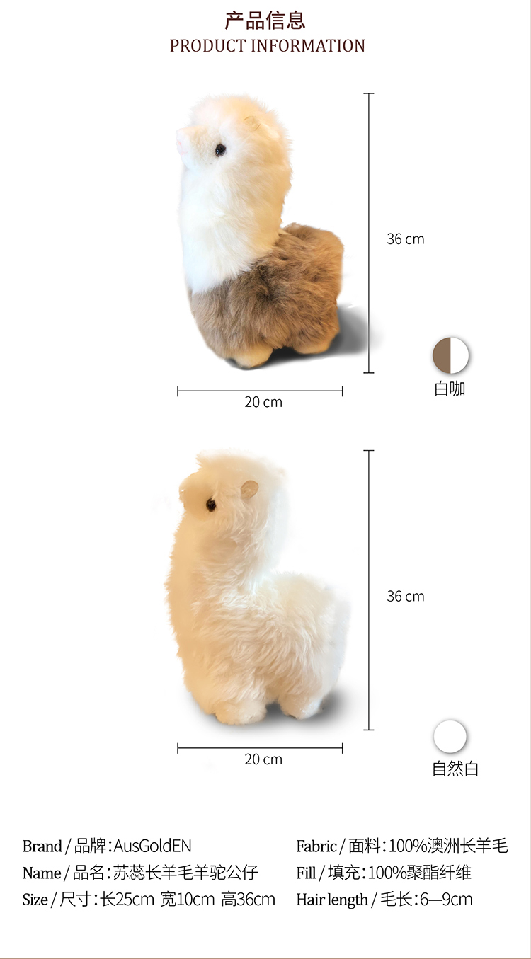 商品名称:AusGoldEN澳洲金苏蕊长羊毛羊驼公仔-白咖25*10*36cm 白色