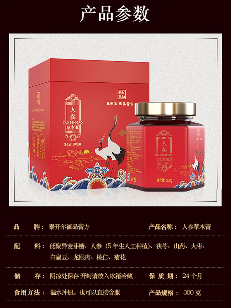 商品名称:御品膏方人参草本膏300克全国配送(港澳台,新疆、上海等疫情地区除外) 红色