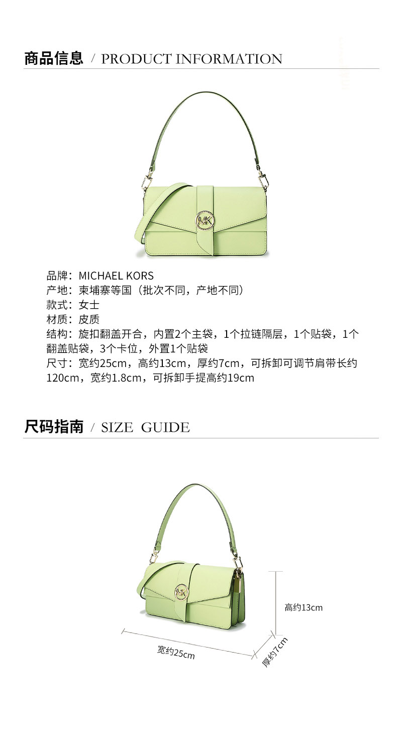 商品名称:Michael Kors 迈克·科尔斯 MK女包 Greenwich系列皮质手提单肩斜挎包Z11100616193 浅杉绿