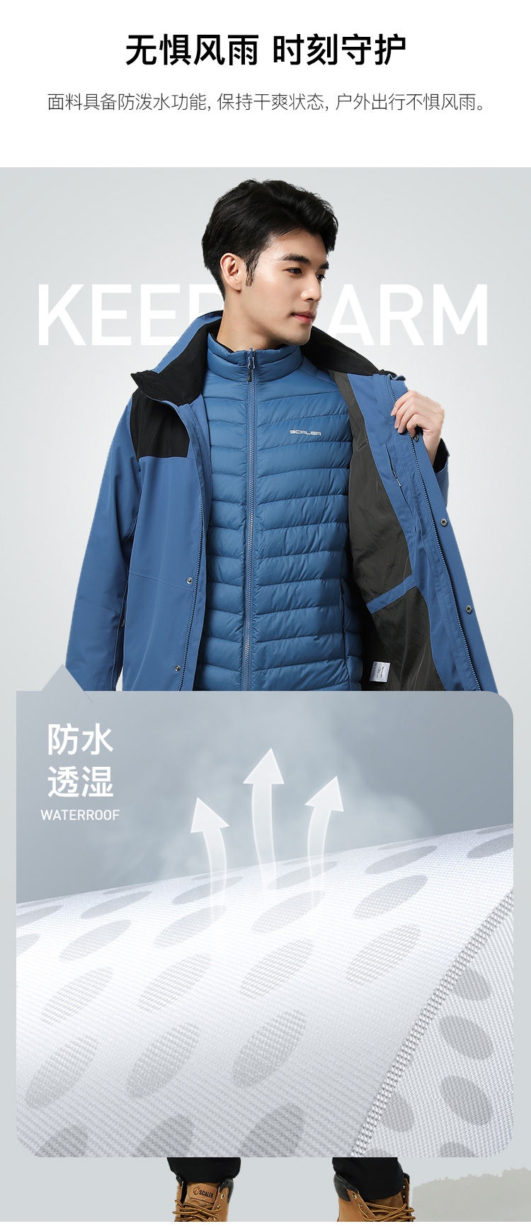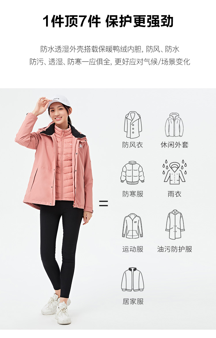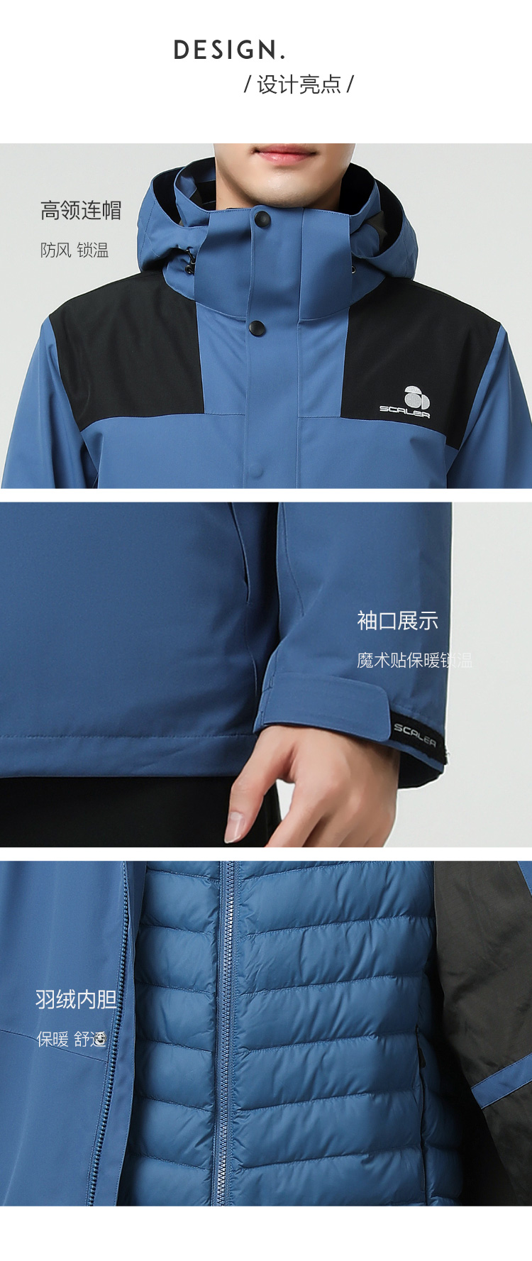 商品名称:思凯乐女羽绒两件套冲锋衣防寒服f2402706 雾蓝 XXL