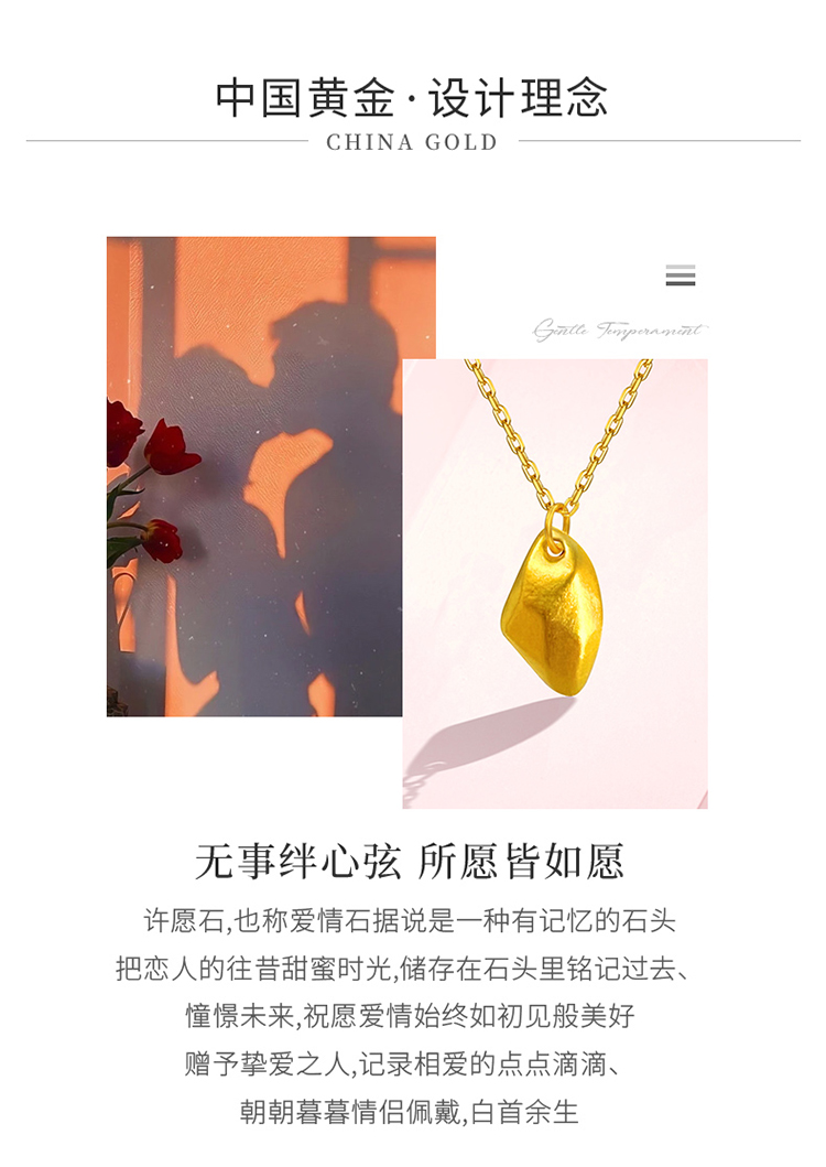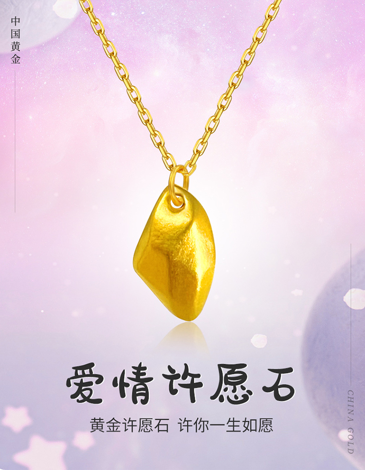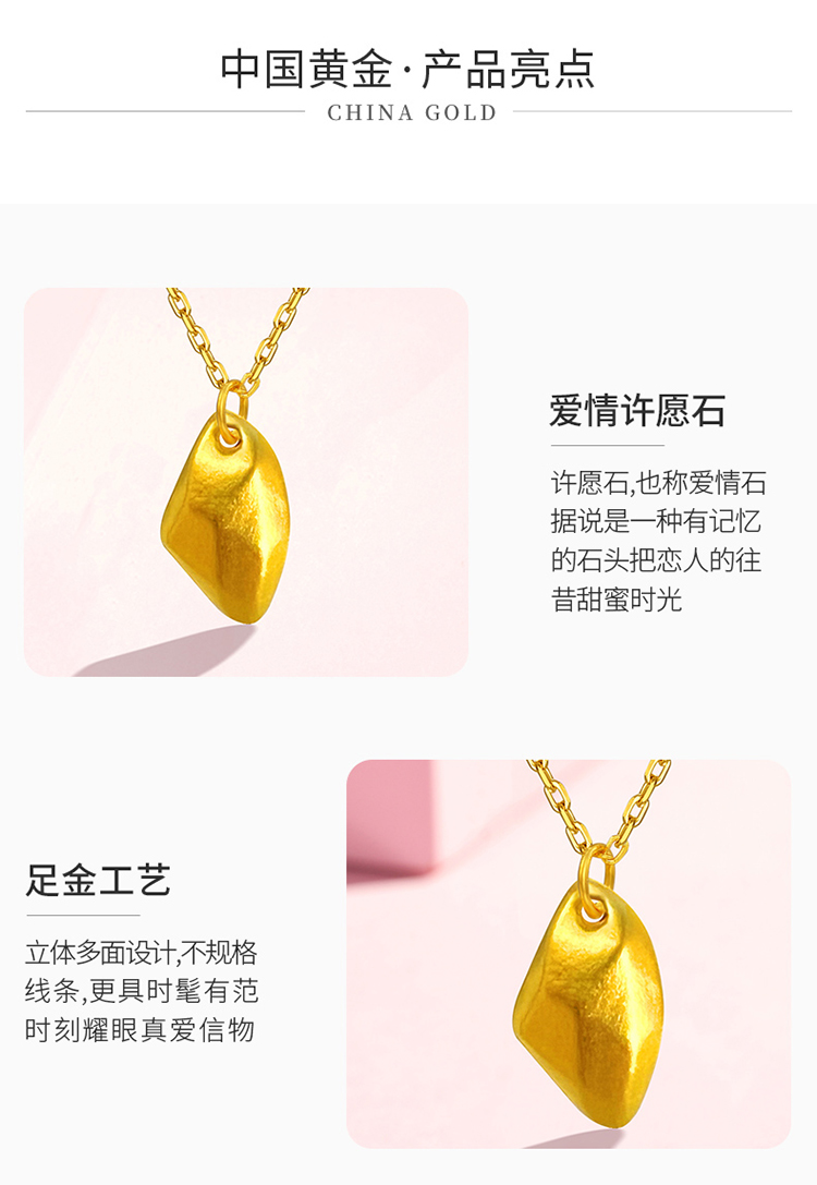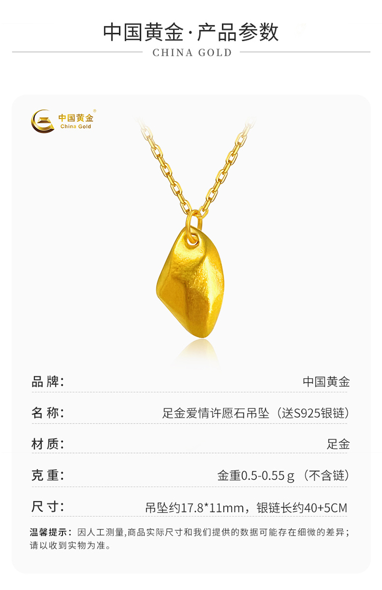 商品名称:中国黄金 黄金足金999爱情许愿石吊坠(+S925银项链) ZGHJ221028(单位:件) 金色