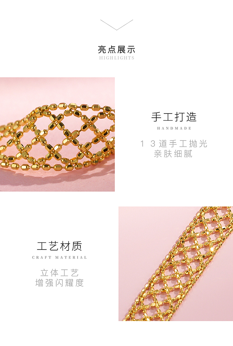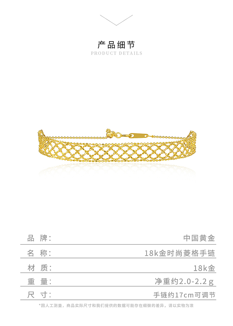 商品名称:中国黄金 18k金时尚菱格手链 ZGHJ210793(单位:件) 金色