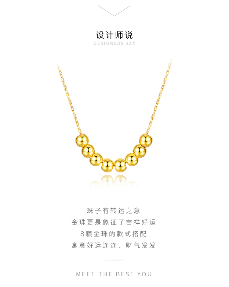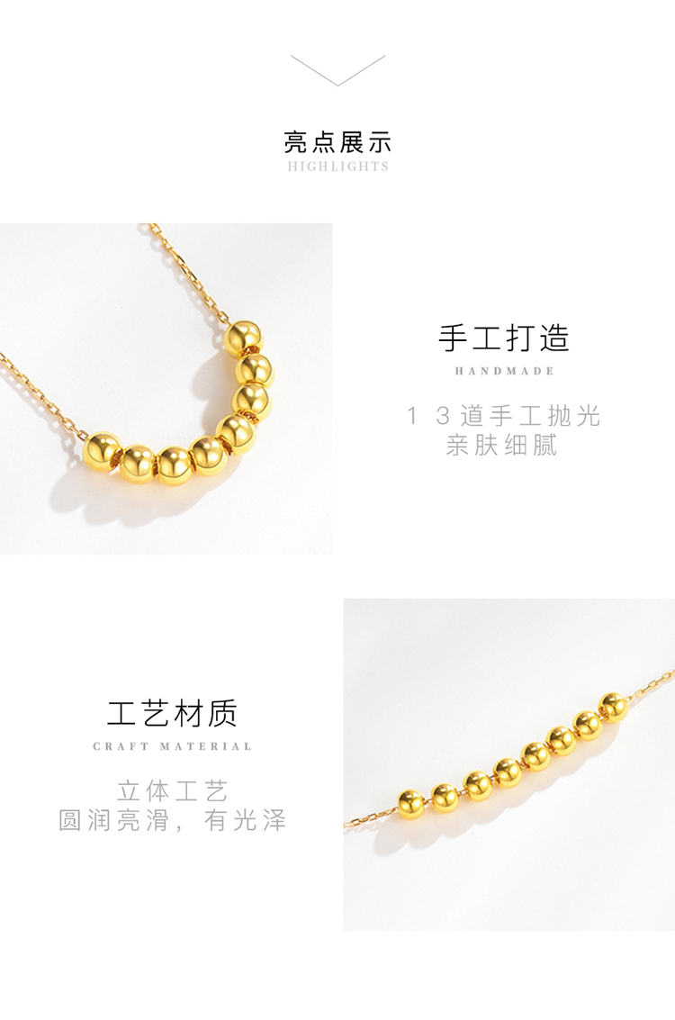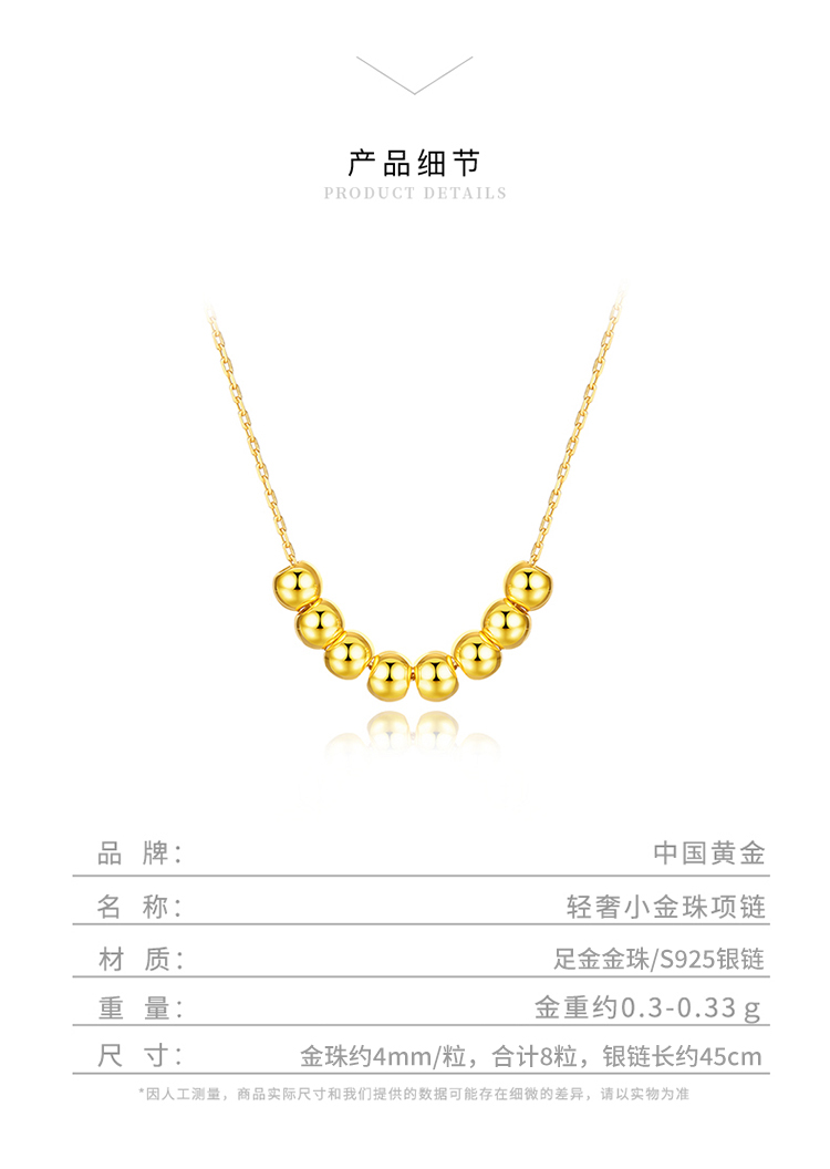 商品名称:中国黄金 轻奢足金999小金珠+S925银项链 ZGHJ210235 金色