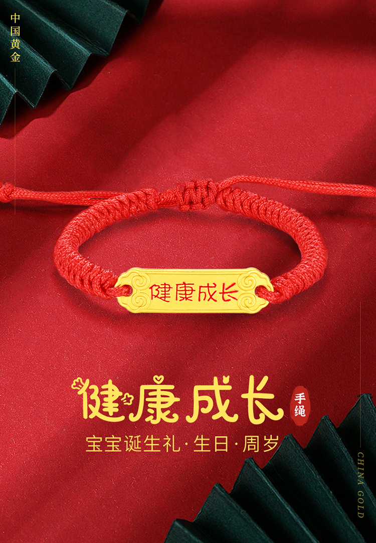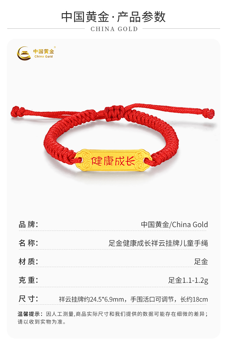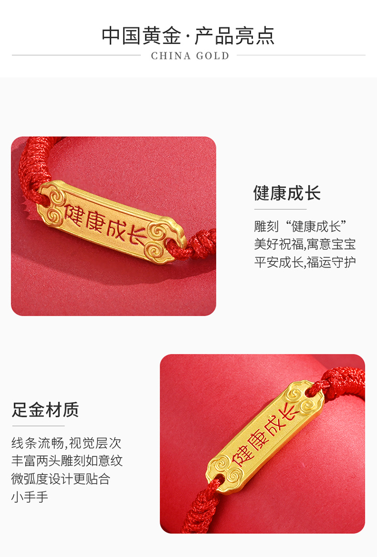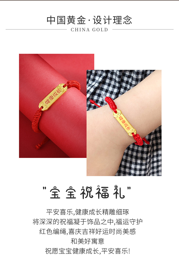 商品名称:中国黄金 黄金足金999健康成长祥云宝宝手绳 ZGHJ230265(单位:件) 金色