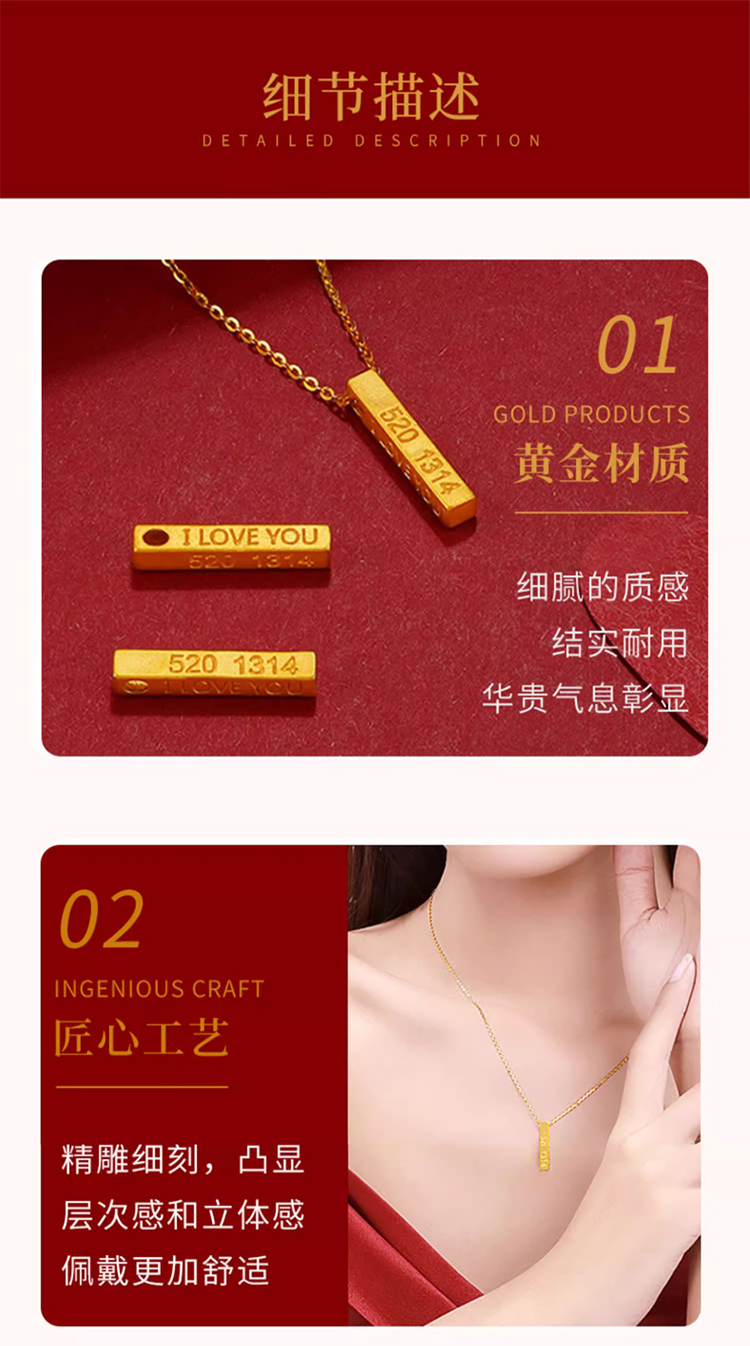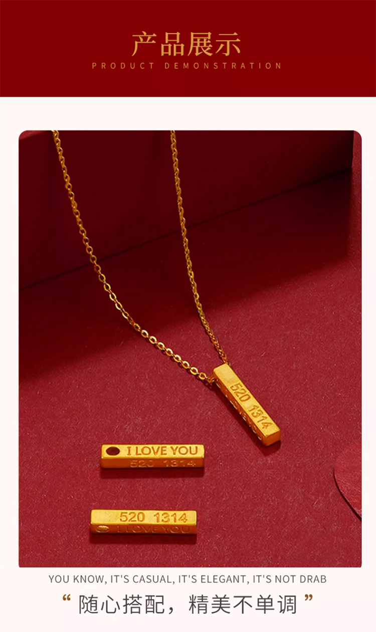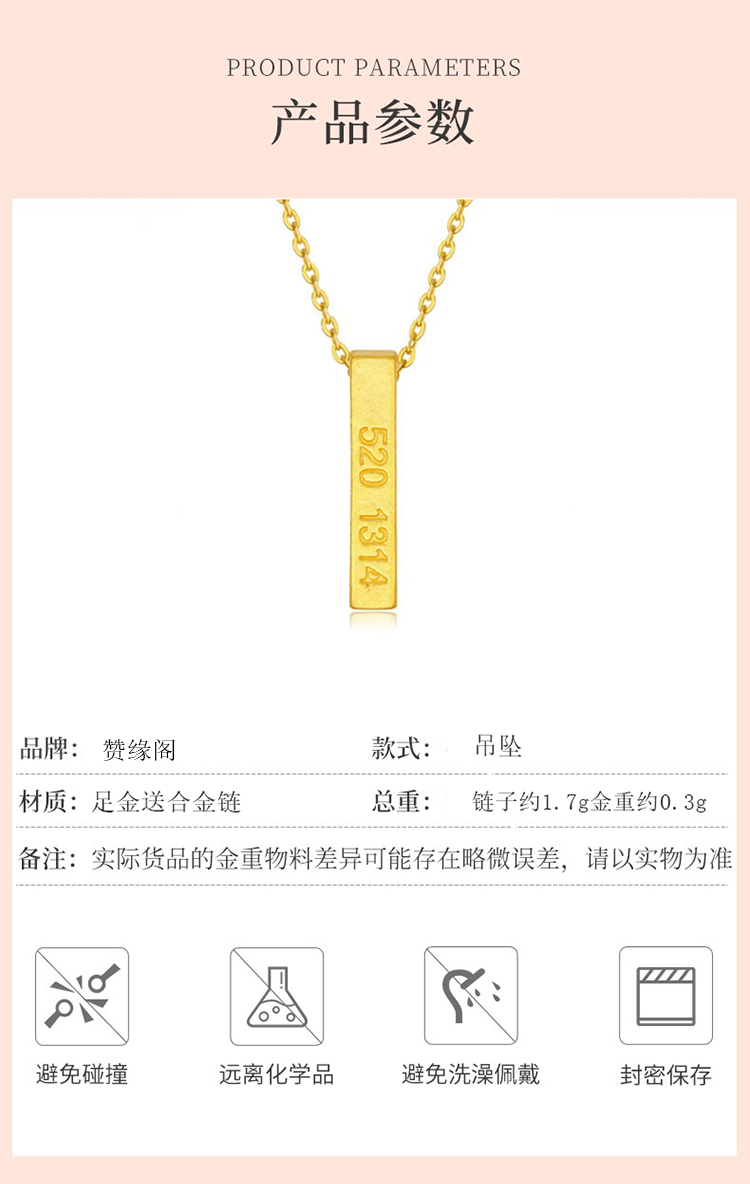 商品名称:赞缘阁黄金足金520小金条吊坠JT520(单位:件) 黄色0.3-0.4g