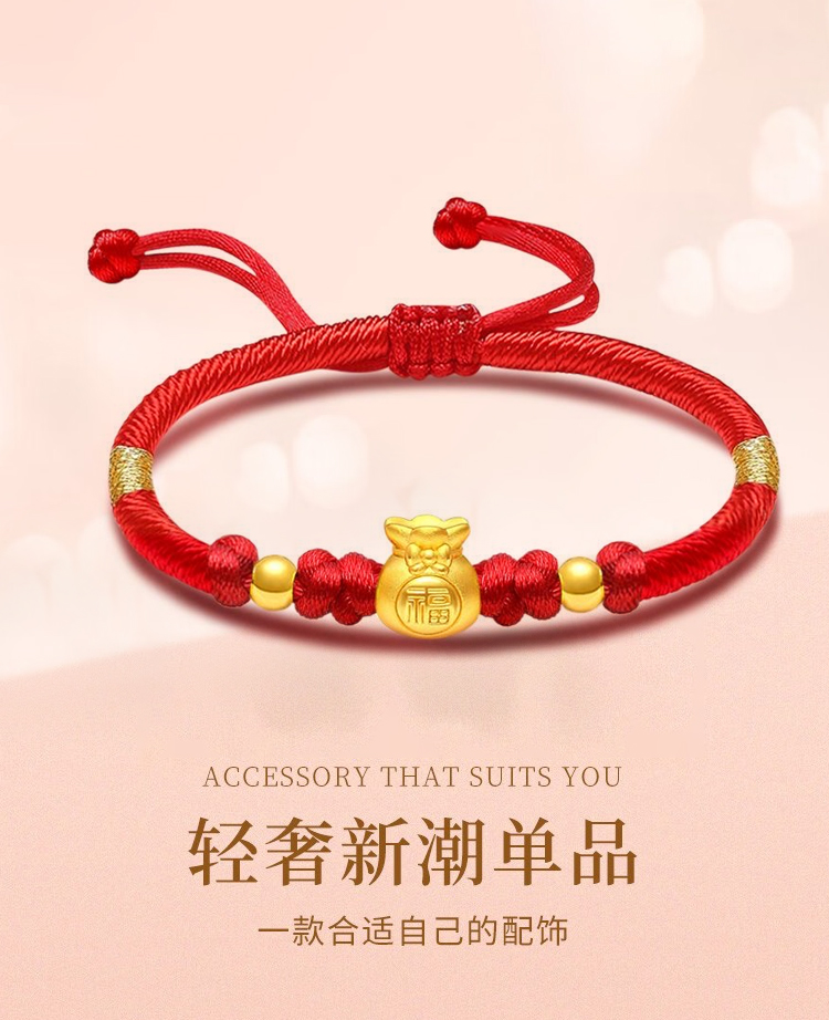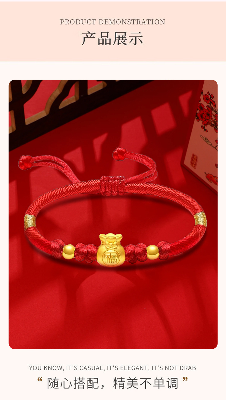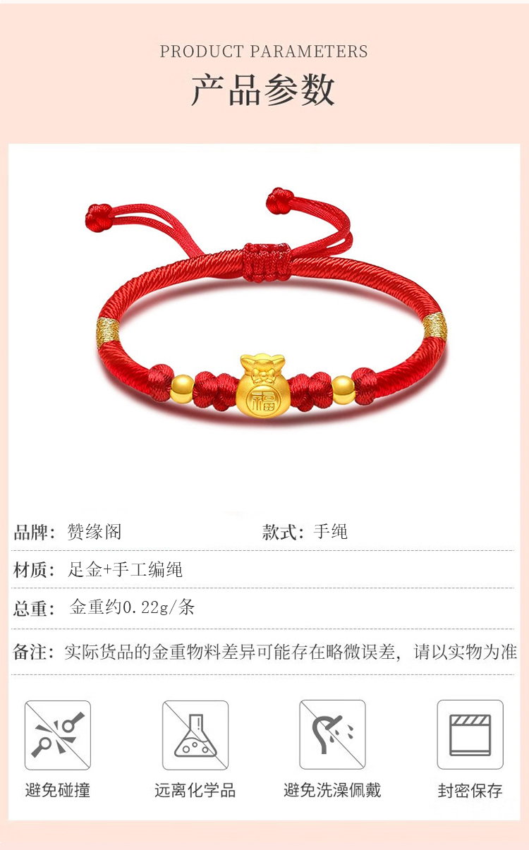 商品名称:赞缘阁 黄金足金福袋手绳FD02(单位:件) 红色0.22-0.26g