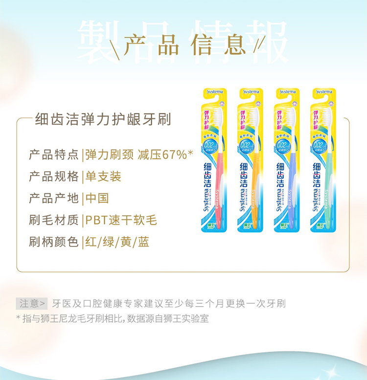 商品名称:狮王细齿洁牙刷软毛细毛 护理牙刷 深入去渍 呵护牙龈 刷头小巧(颜色随机发货)3支装*3