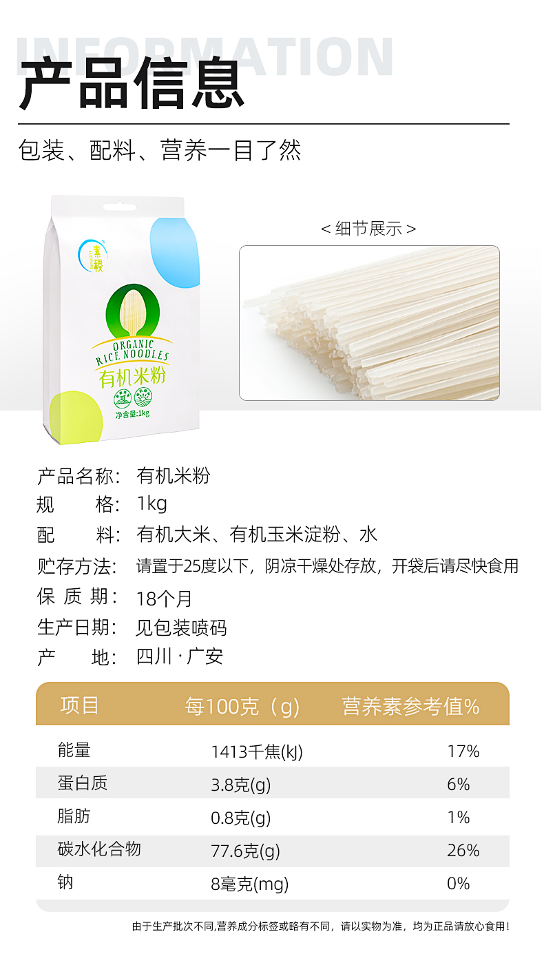 商品名称:素稷(SUJI)有机生态米粉正宗手工干米粉螺蛳粉肥汁米线 1kg*2袋有机米粉 单位:瓶 清新色