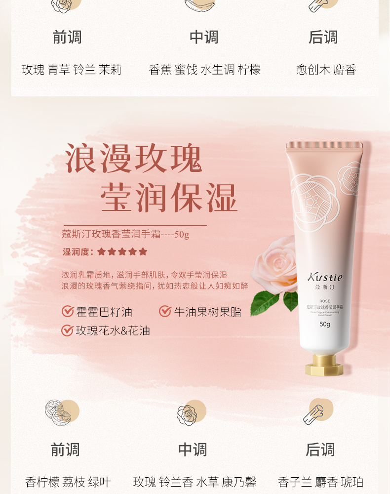 商品名称:蔻斯汀玫茉莉香保湿手霜50g 单位(支) 浅杉绿