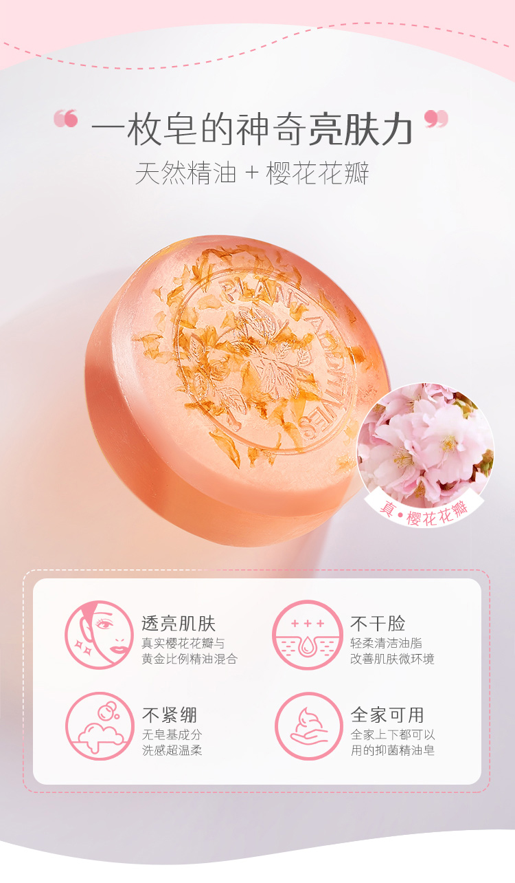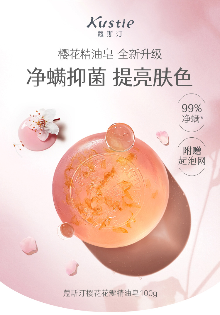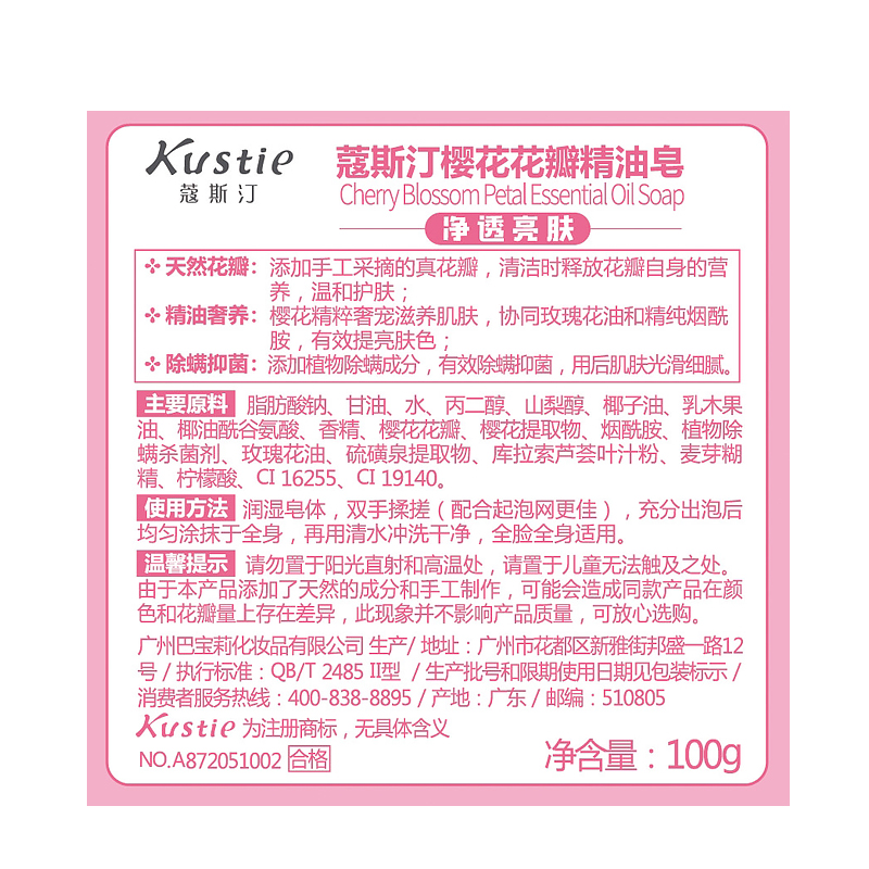 商品名称:蔻斯汀 樱花花瓣精油皂(升级版)100g 单位(盒) 粉色