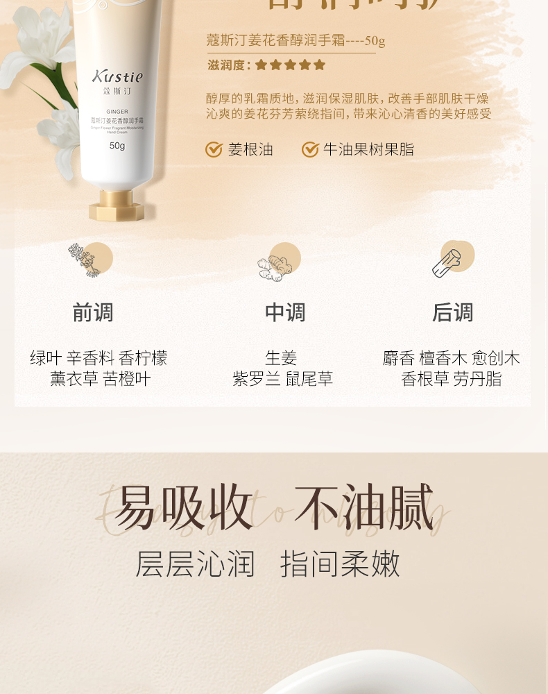 商品名称:蔻斯汀姜花香醇润手霜50g 单位(只) 黄色