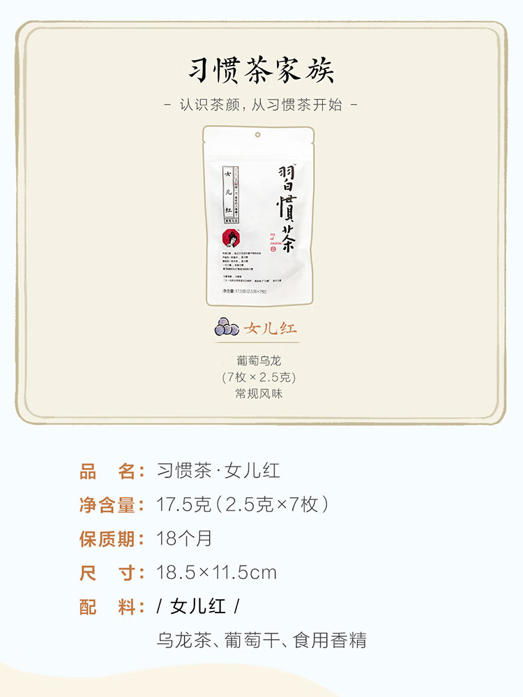 商品名称:茶颜悦色习惯茶/女儿红2.5g*7枚/袋*2袋 白色
