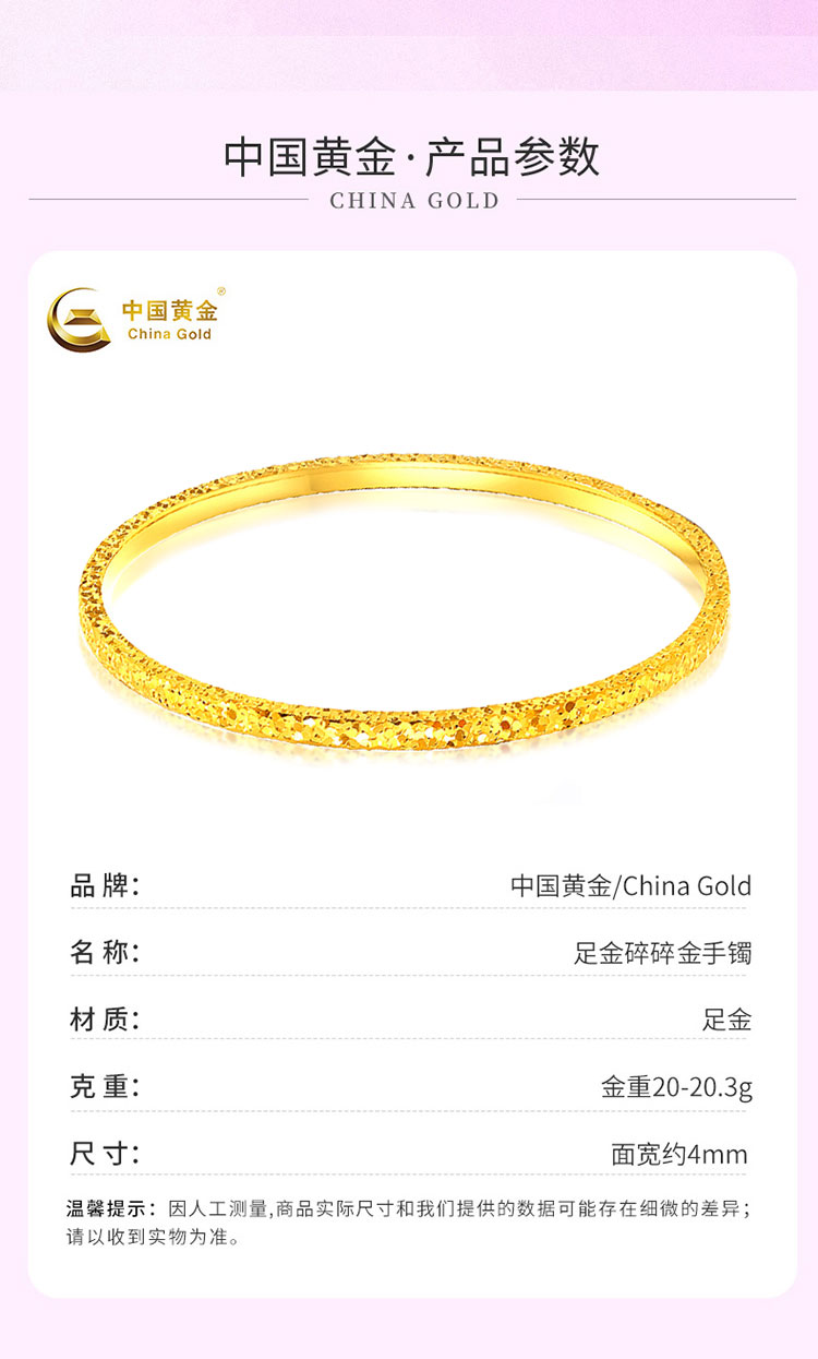 商品名称:中国黄金 足金碎碎金手镯 ZGHJ240649-20-60#(单位:件) 金色