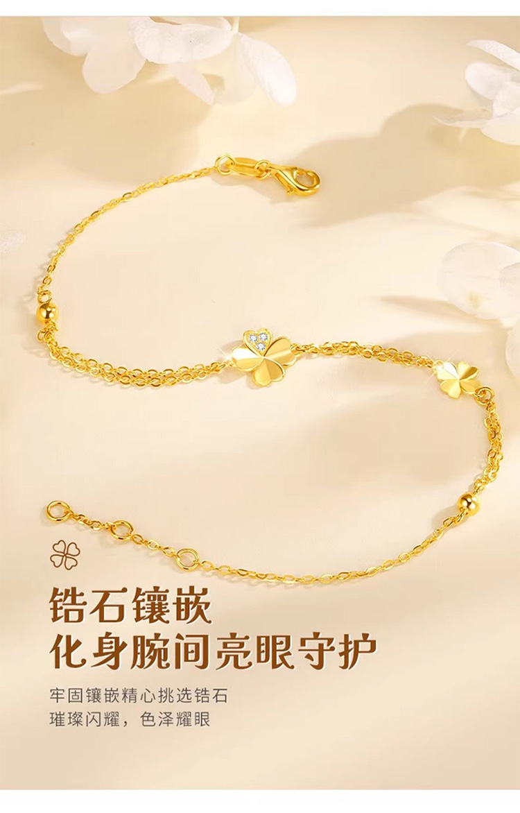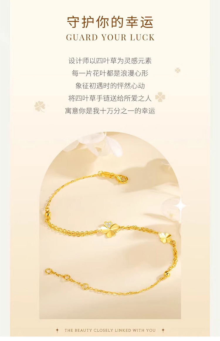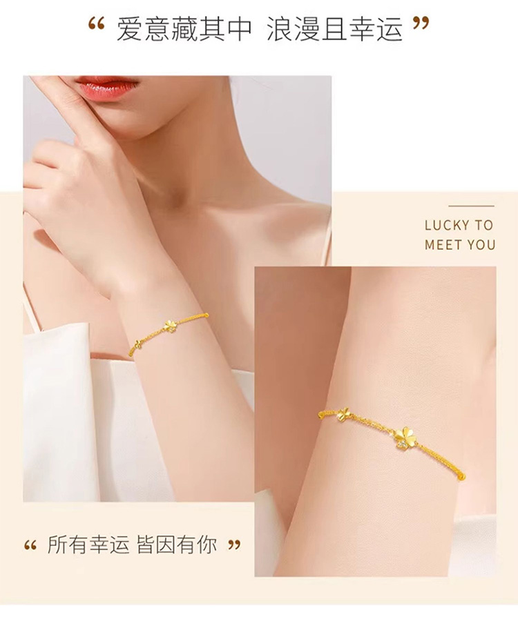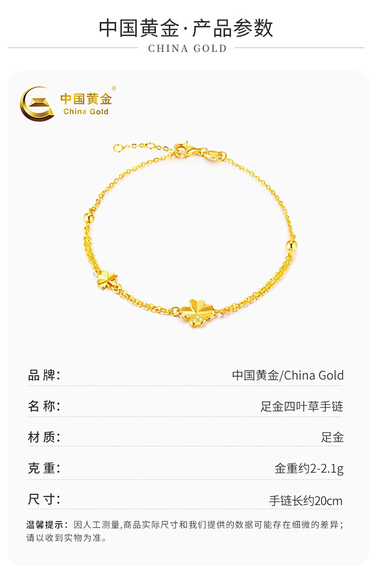 商品名称:中国黄金 足金四叶草女士手链 ZGHJ230620(单位:件) 金色