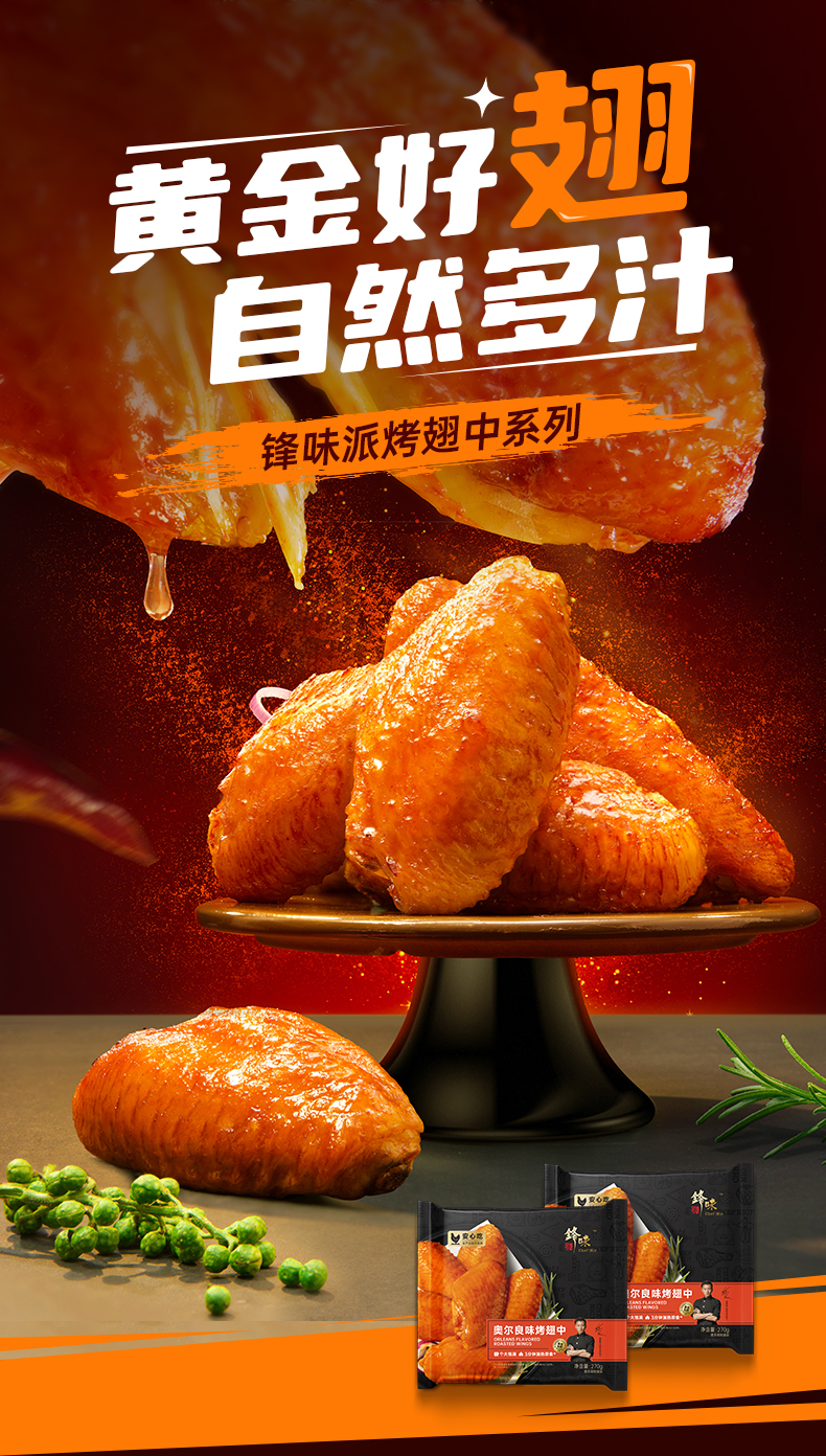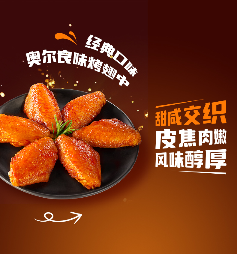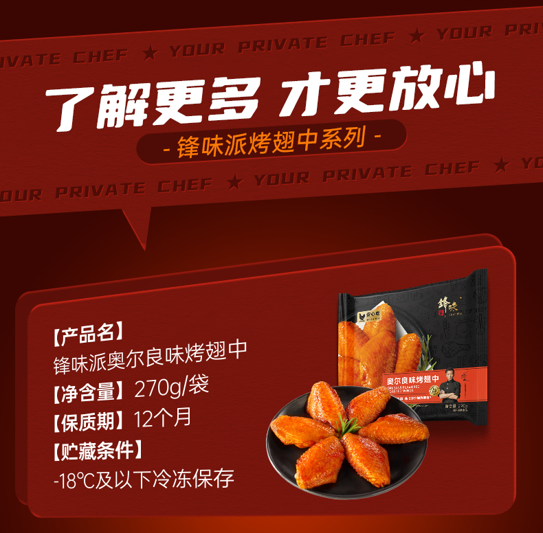 商品名称:锋味派奥尔良味烤翅中270g*3盒 拿铁色
