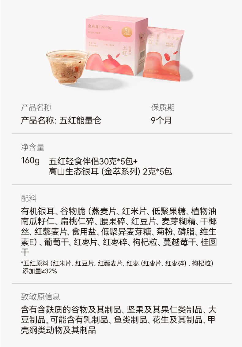 商品名称:金燕耳五红轻食代餐5天装/盒