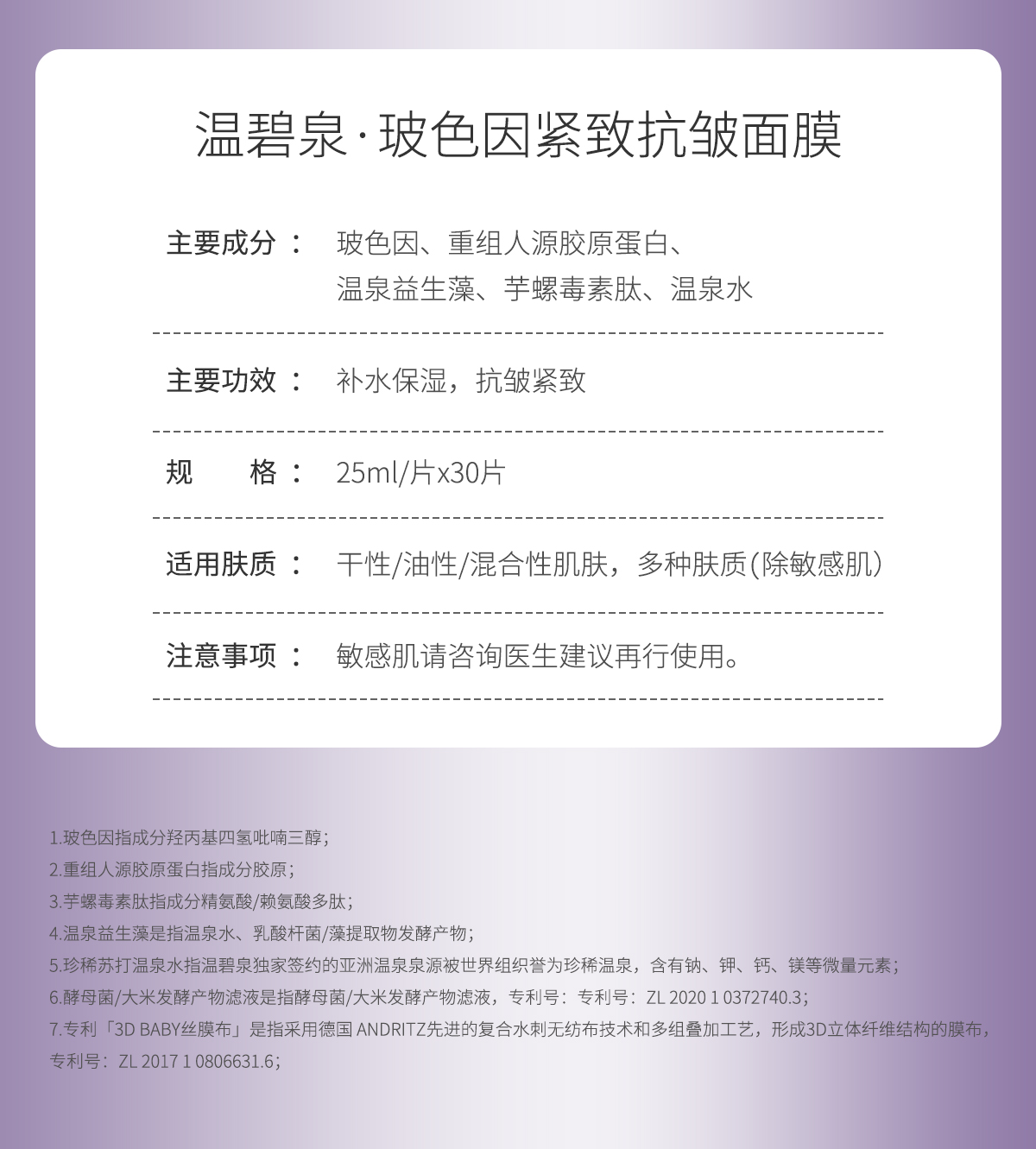 商品名称:温碧泉玻色因紧致抗皱面膜25ml/片*30片(单位:盒)