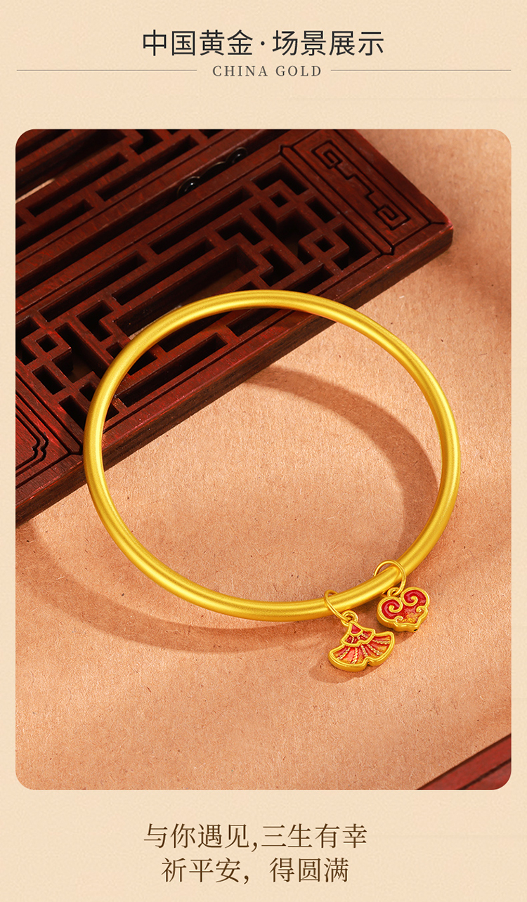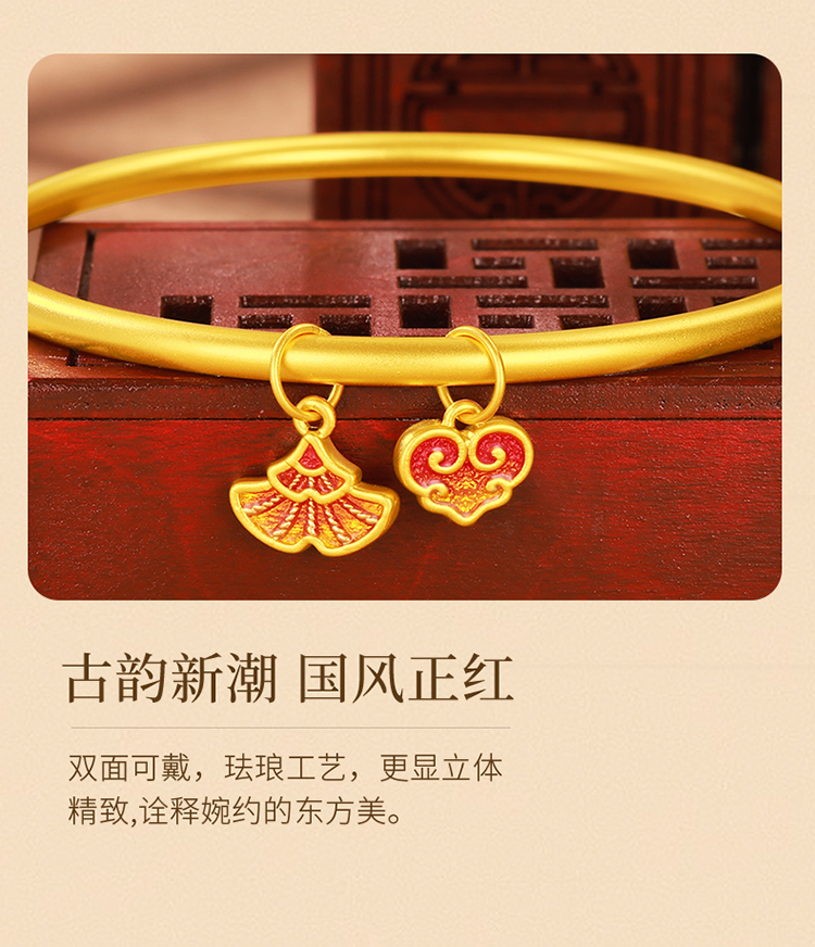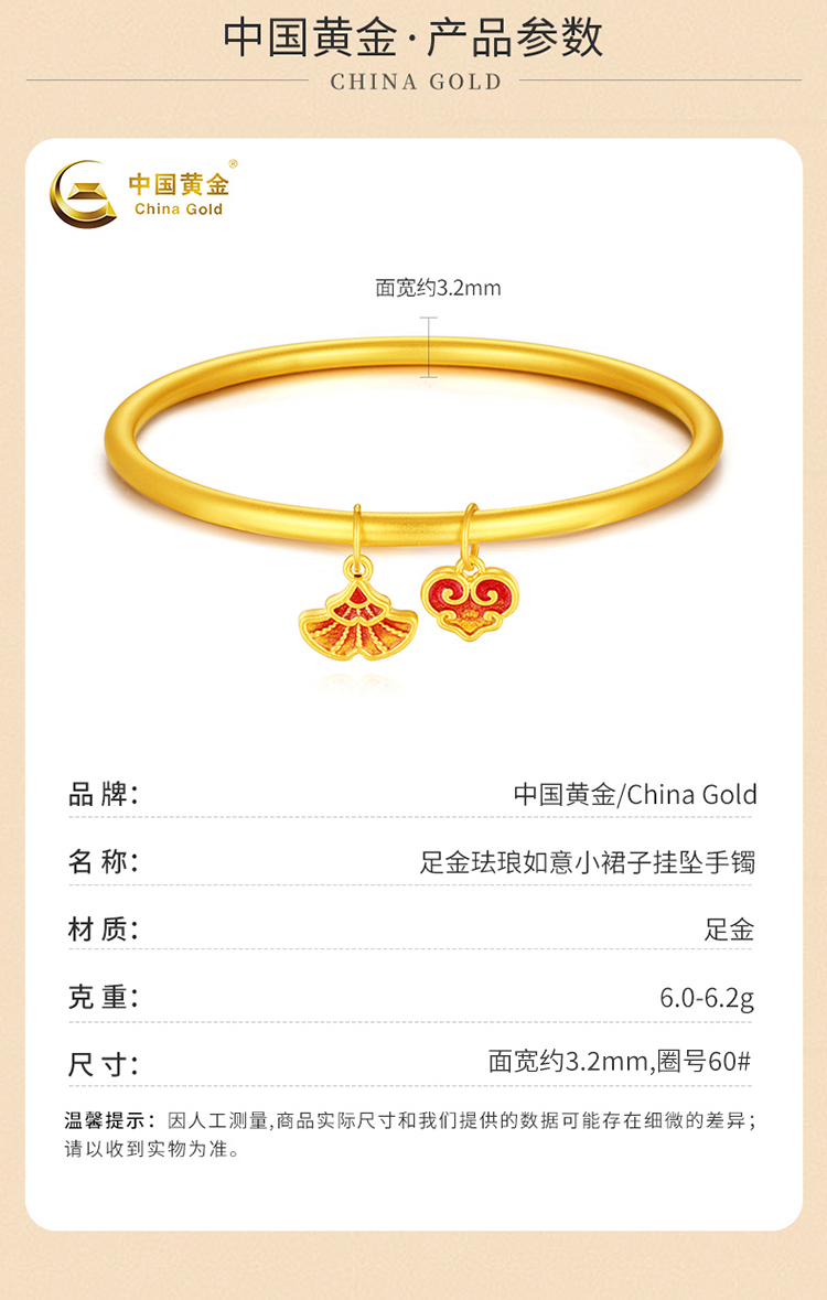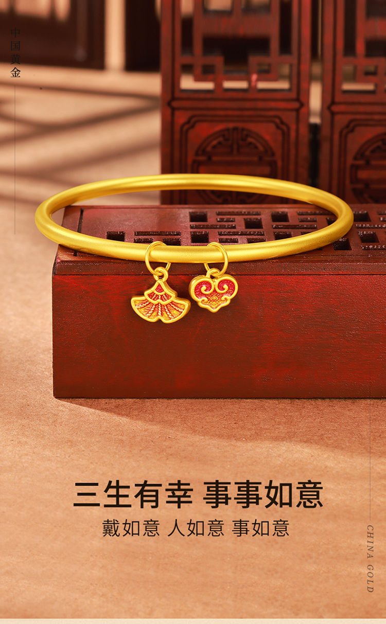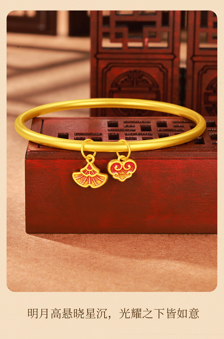 商品名称:足金珐琅如意小裙子挂坠手镯60# ZGHJ240745-2(单位:件) 金色