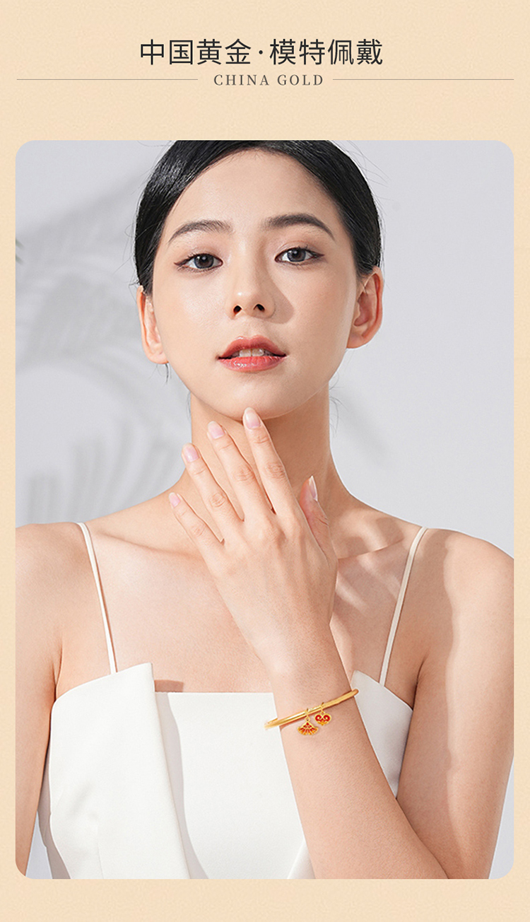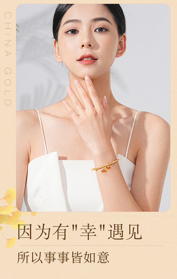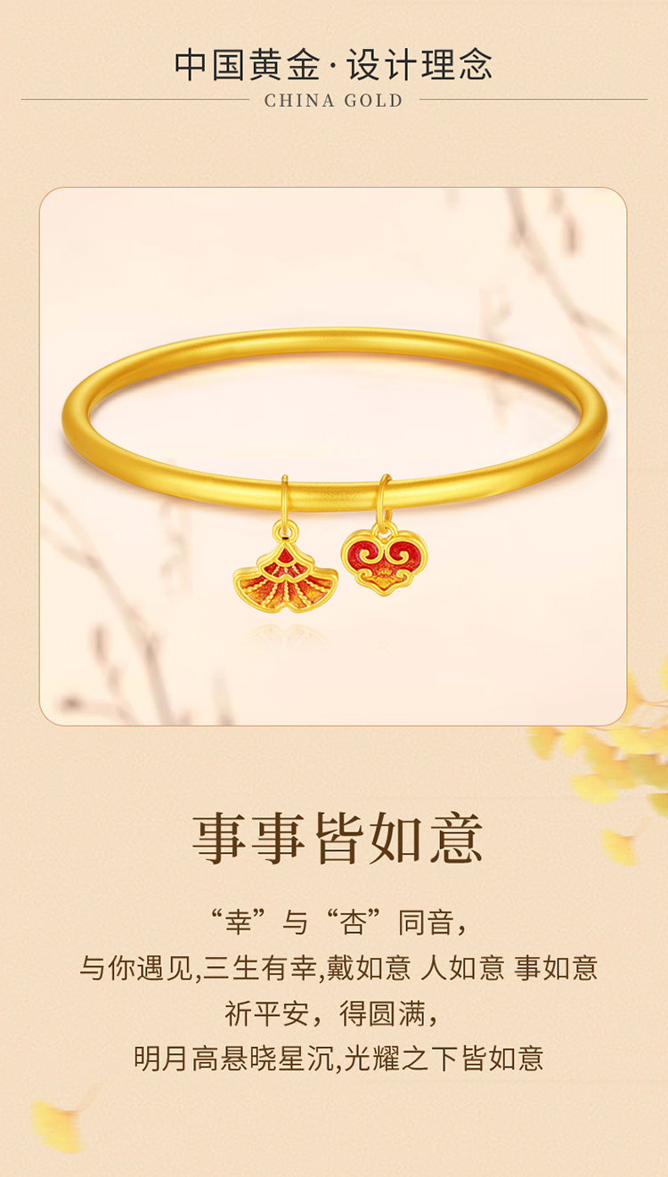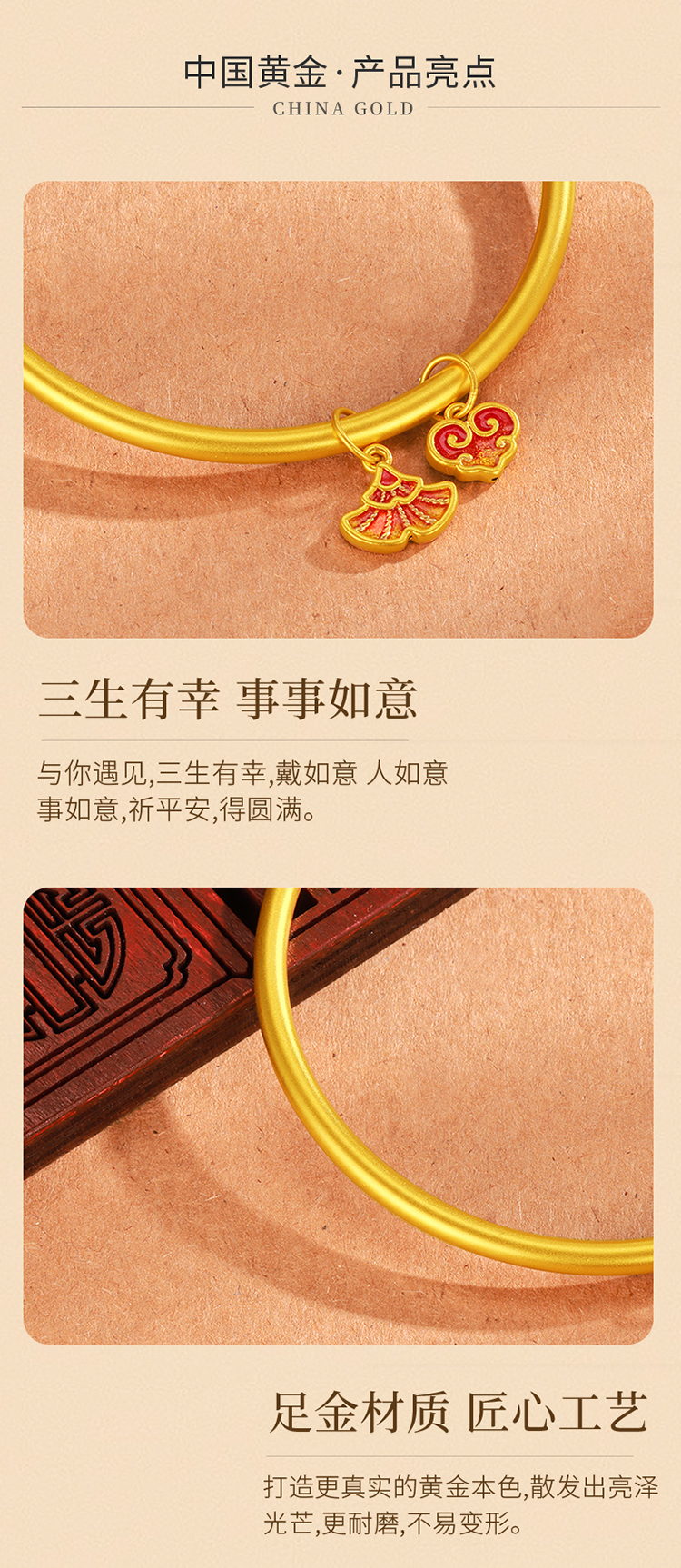 商品名称:足金珐琅如意小裙子挂坠手镯60# ZGHJ240745-2(单位:件) 金色