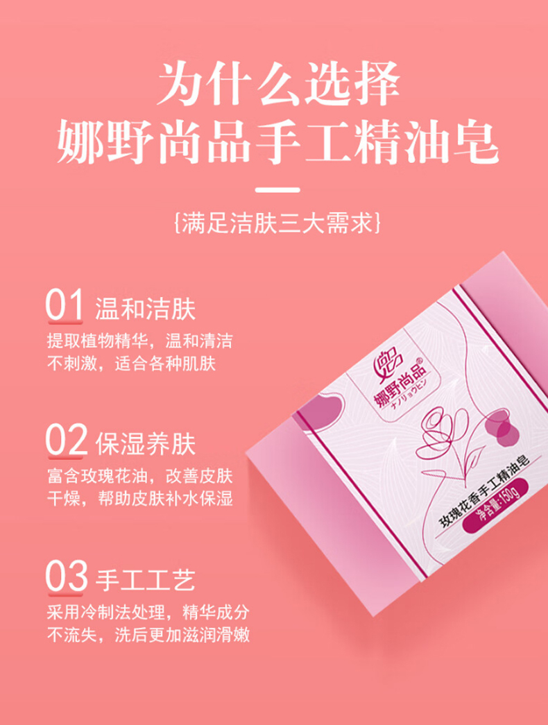 商品名称:娜野尚品玫瑰花香手工精油皂150g*3(单位:块)