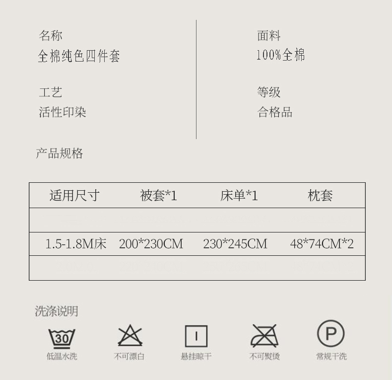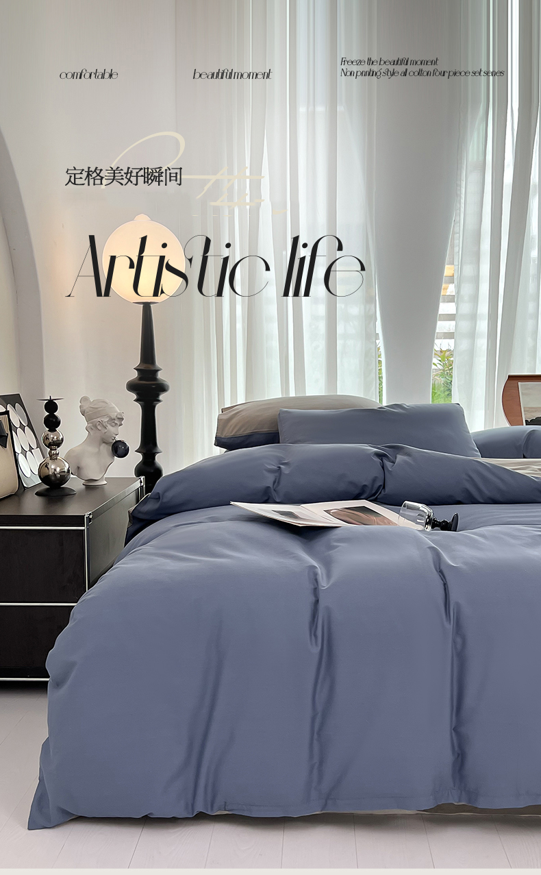 商品名称:保罗彼得PL-24208-1全棉纯色四件套200*230cm(单位:套) 卡布里蓝