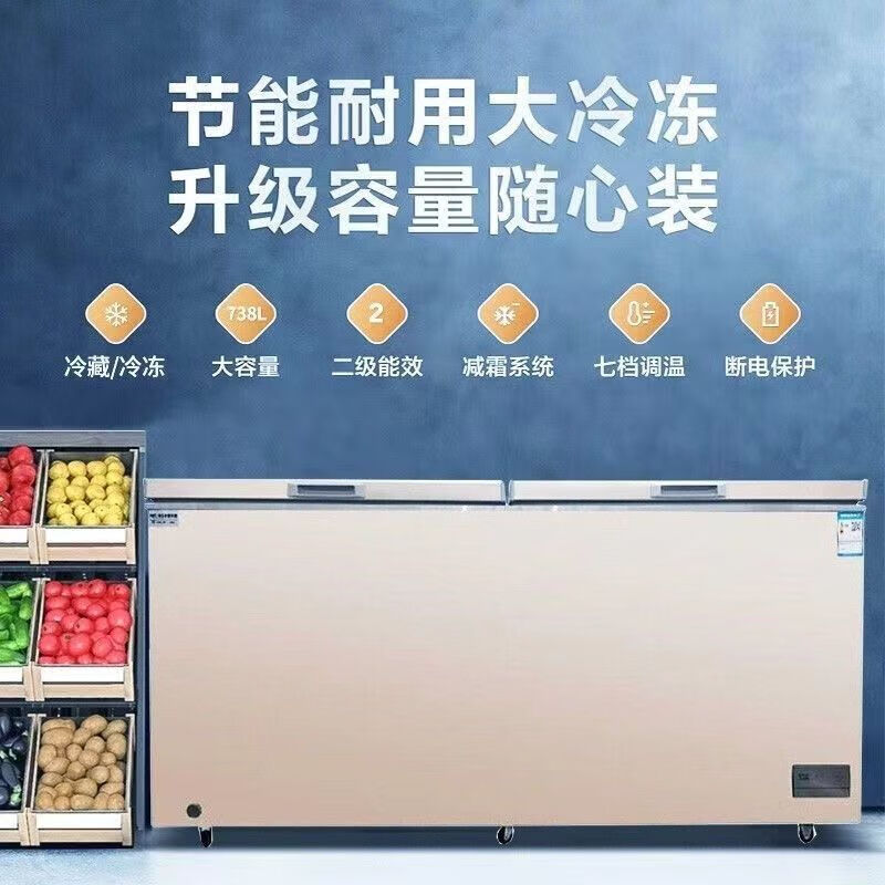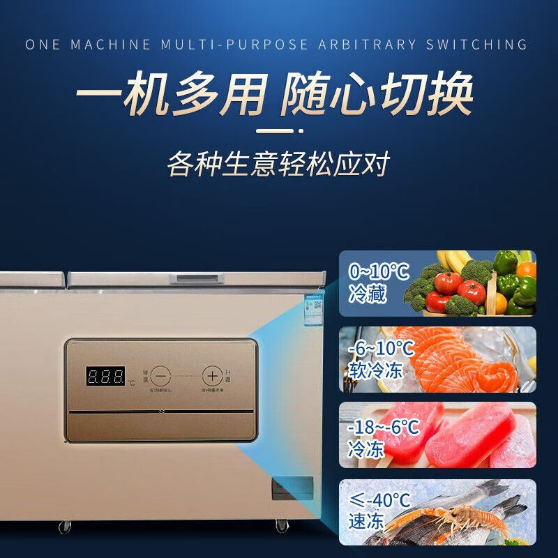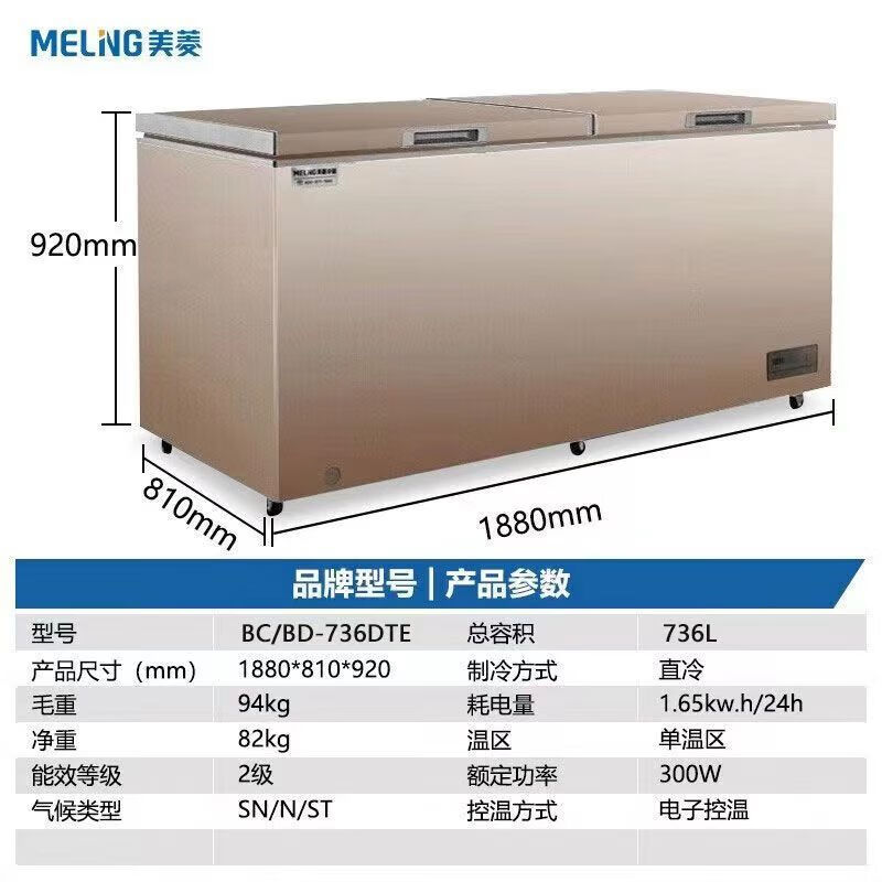 商品名称:美菱冰柜商用零下40度冰柜超低温度卧式冷柜家用两用冷藏冷冻柜 BC/BD-736DTE咖啡金 台 金色