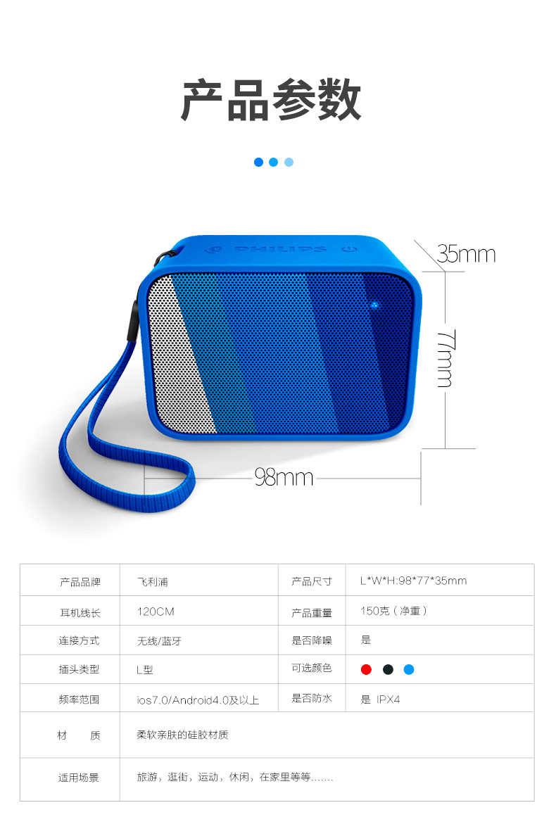 商品名称:飞利浦(PHILIPS)BT110音乐魔盒 随身便携蓝牙小音箱/个 红色