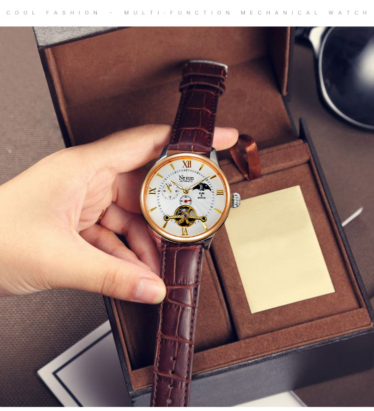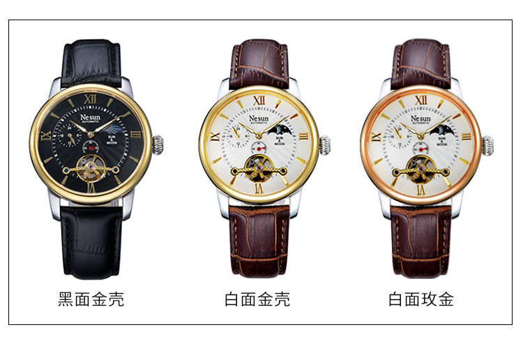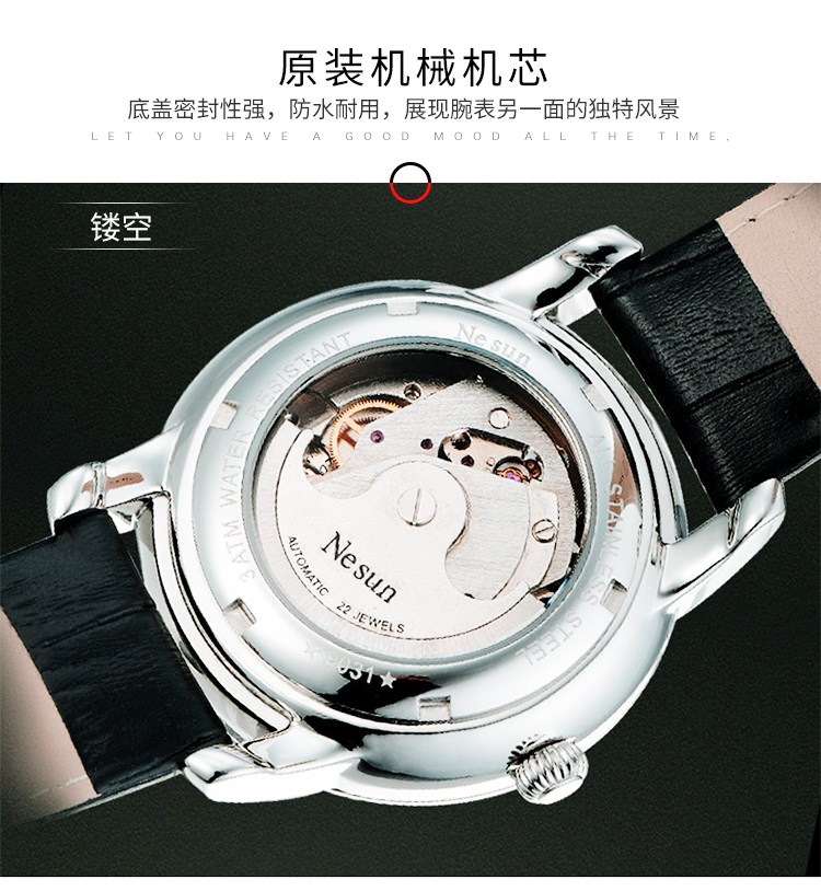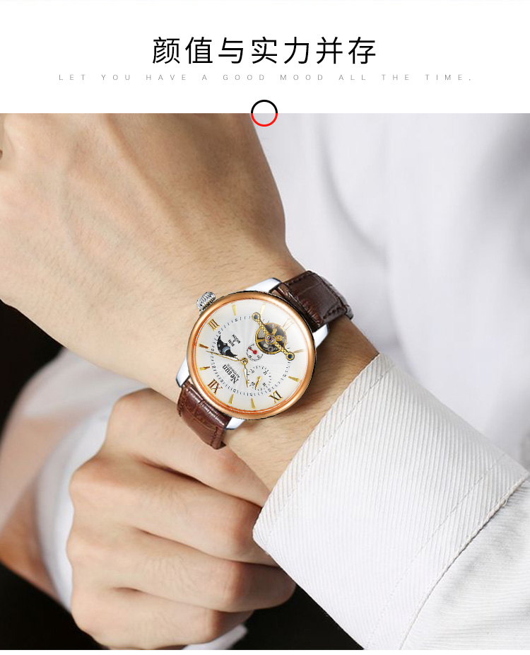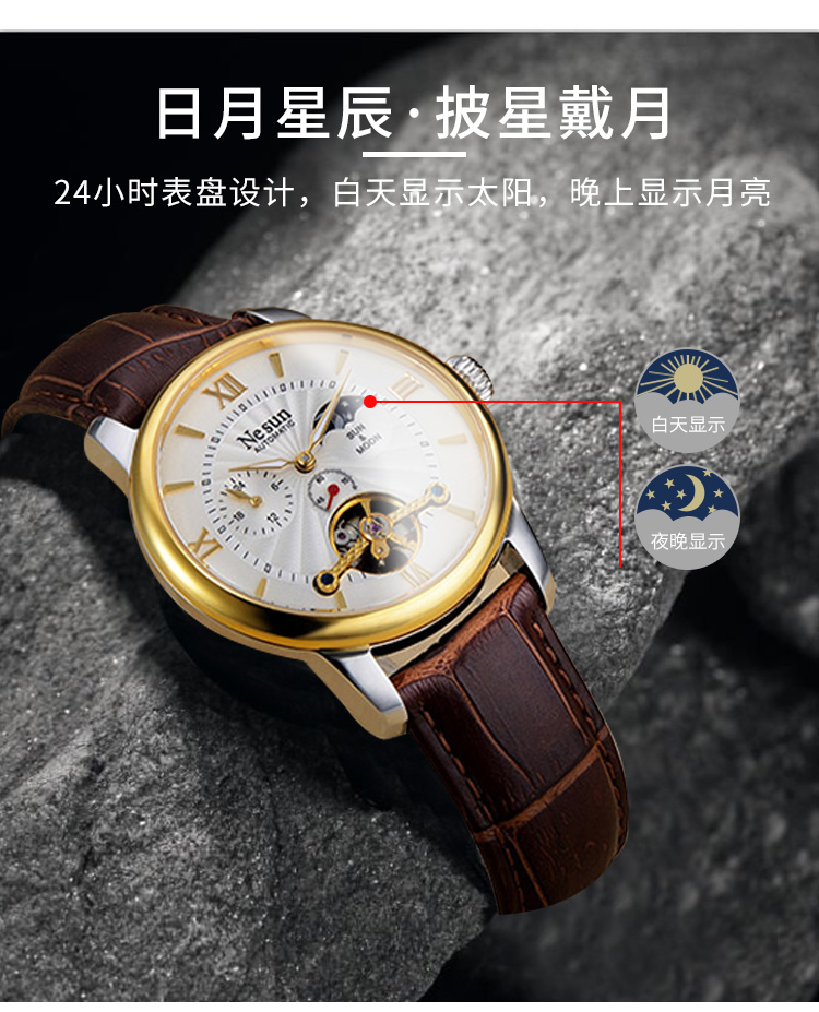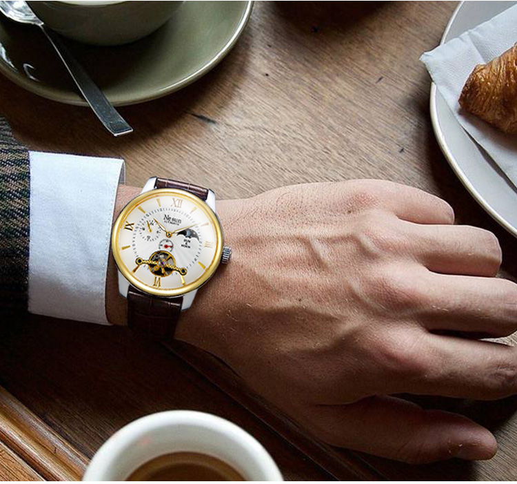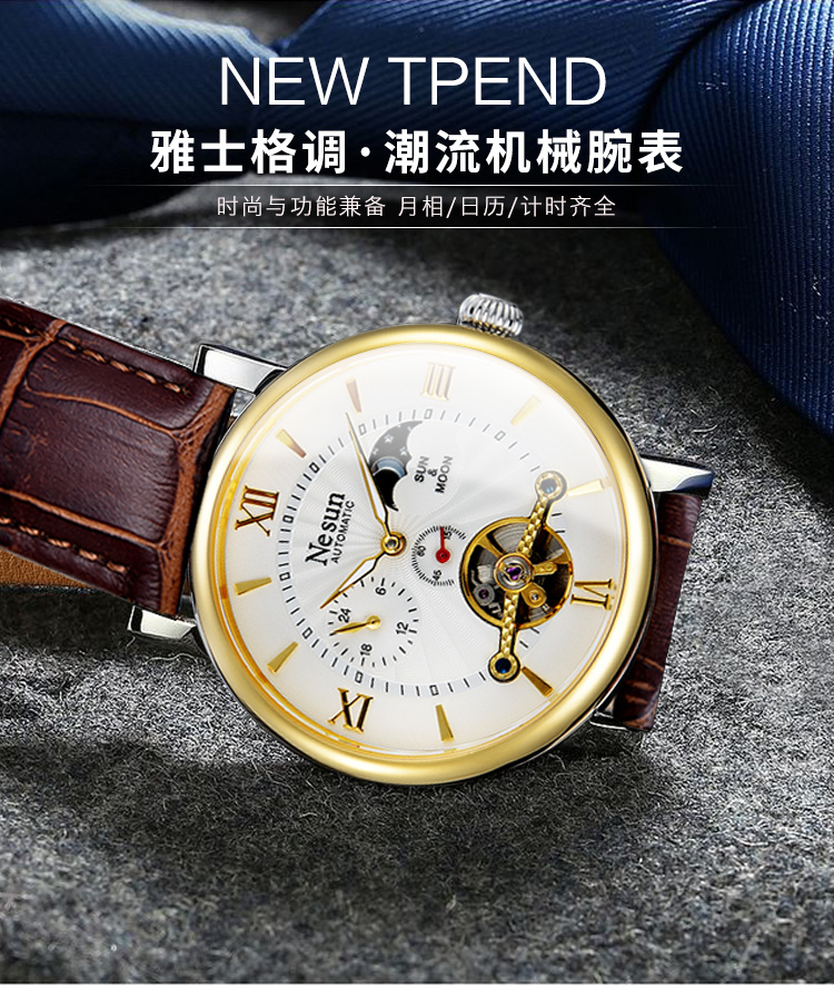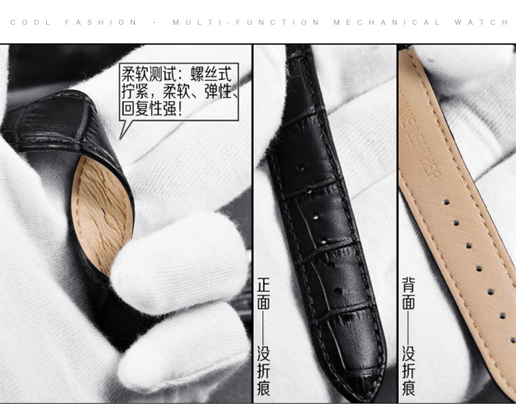 商品名称:尼尚镂空多功能真皮机械男表【颜色随机发货】 白金 白金