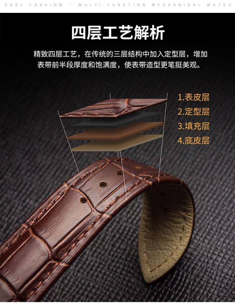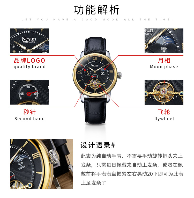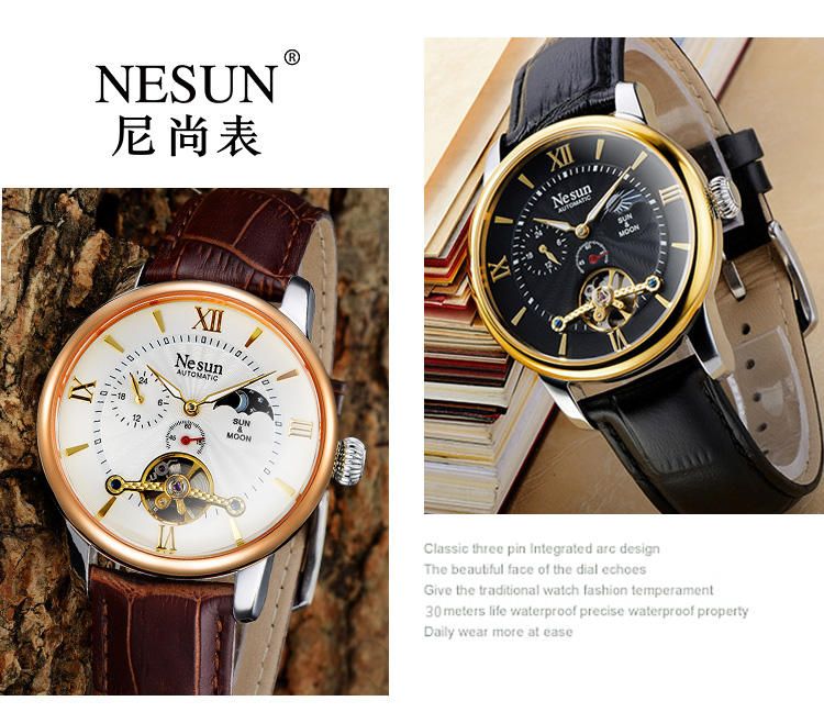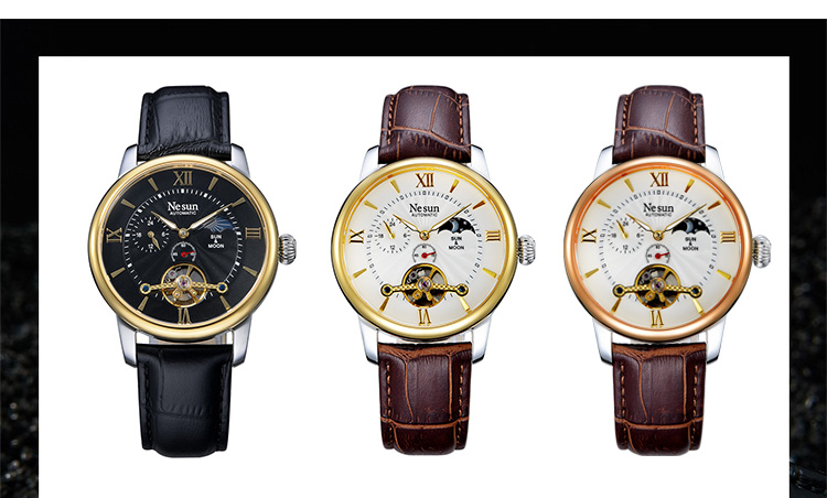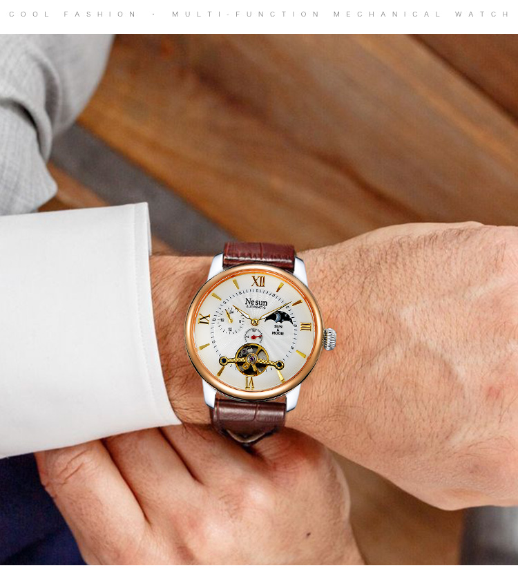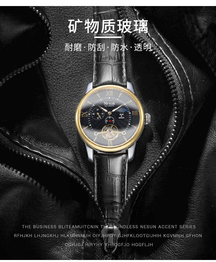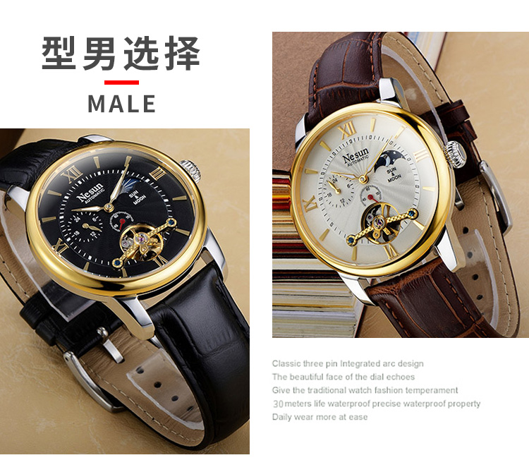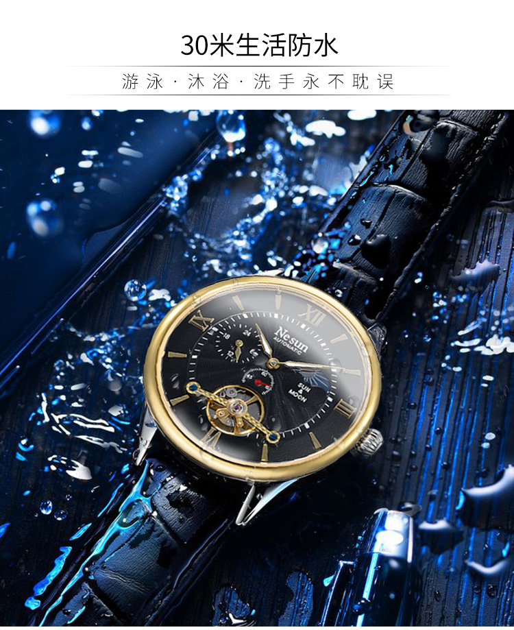 商品名称:尼尚镂空多功能真皮机械男表【颜色随机发货】 白金 白金