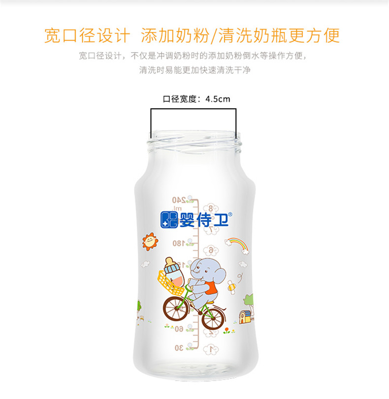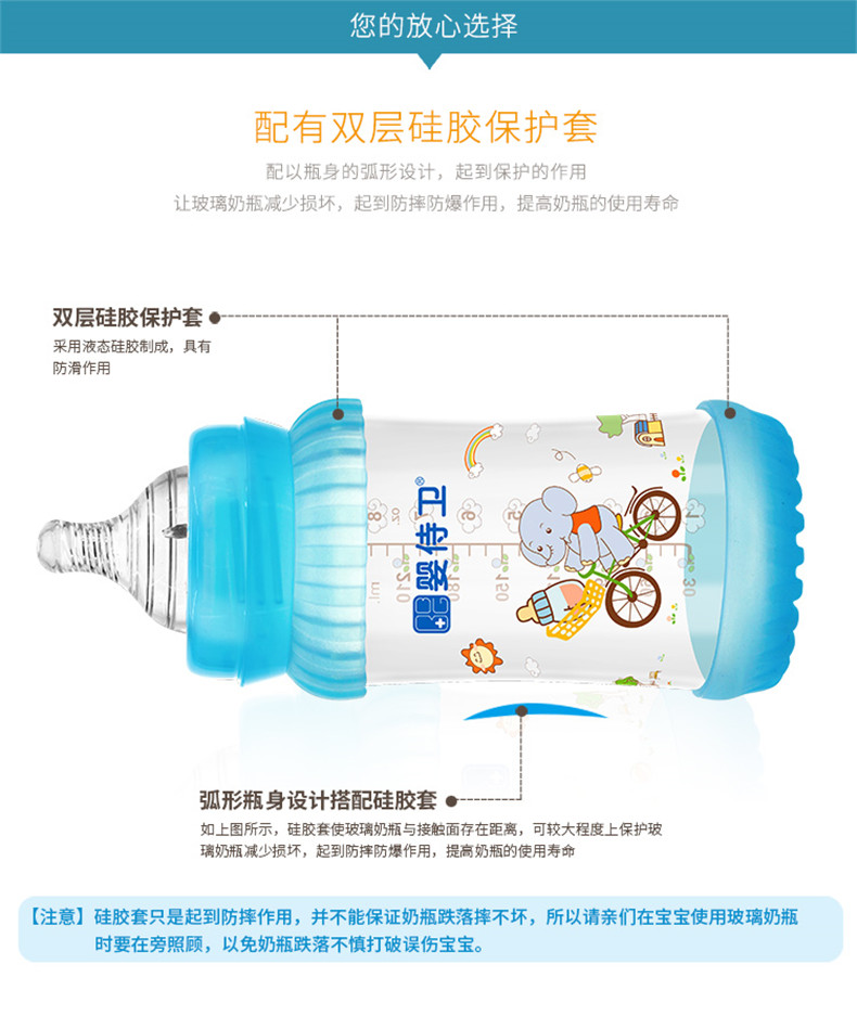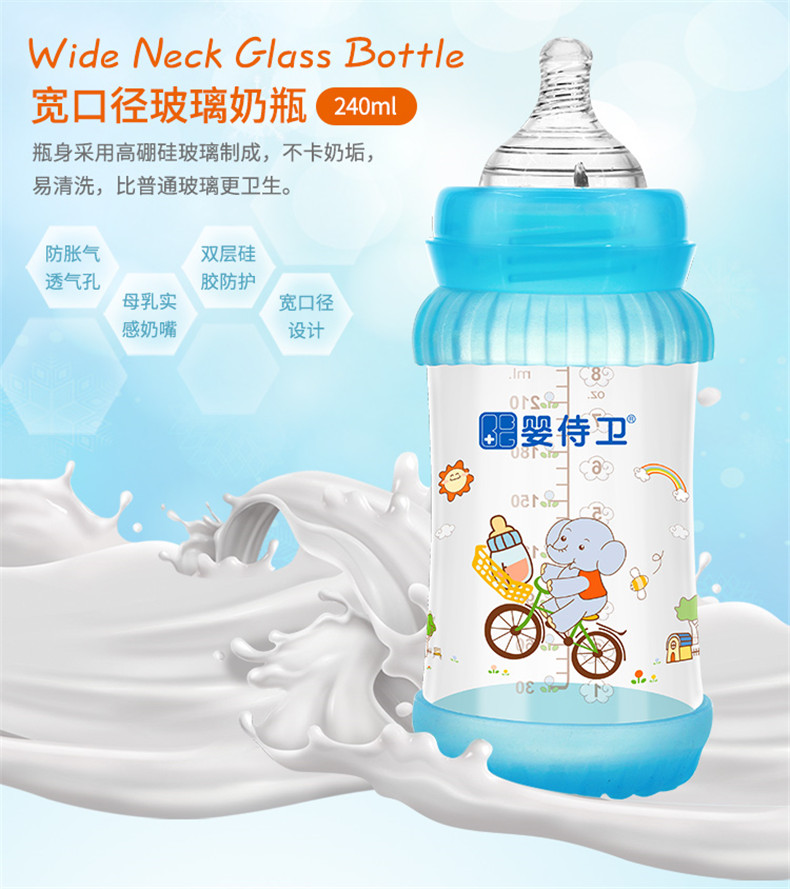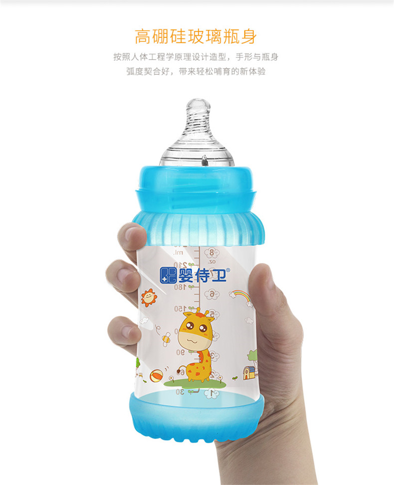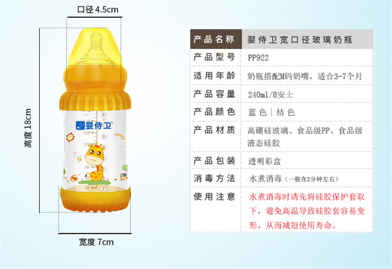 商品名称:婴侍卫 宽口径玻璃奶瓶(240毫升/8安士) PP922 蓝/桔 随机