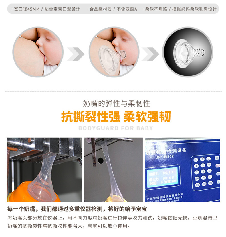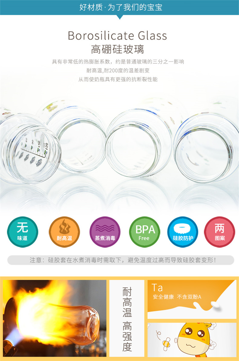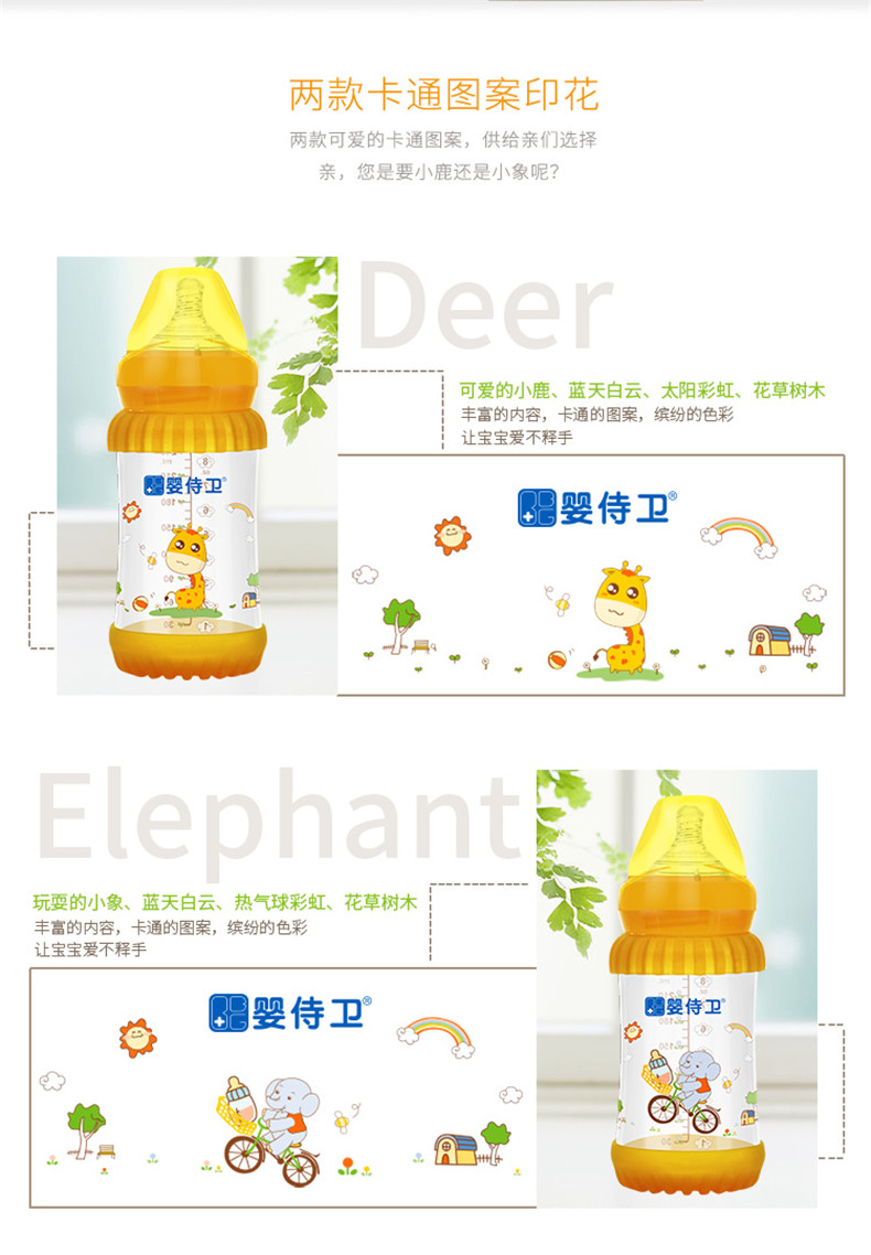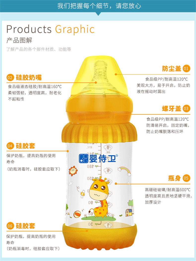 商品名称:婴侍卫 宽口径玻璃奶瓶(240毫升/8安士) PP922 蓝/桔 随机