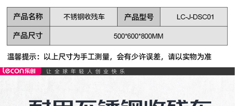 商品名称:乐创(lecon)商用收残车 不锈钢单孔食堂食物残渣收集台 LC-J-DSC01 不锈钢色