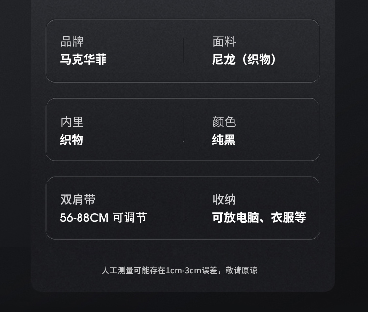 商品名称:马克华菲双肩包 66232803113431100 黑色