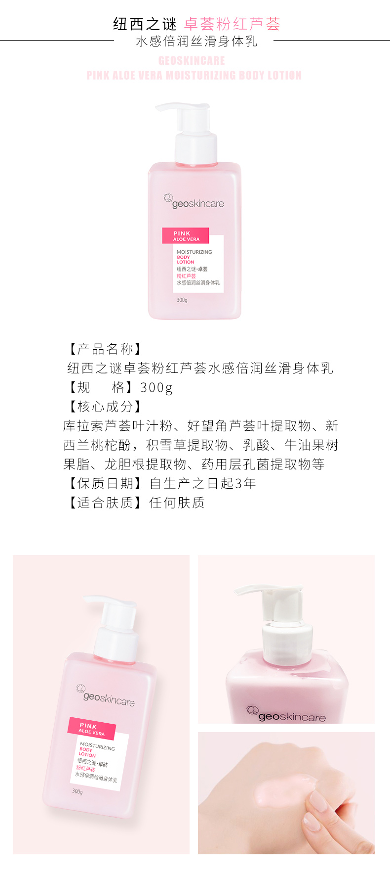 商品名称:纽西之谜身体乳卓荟粉红芦荟水感倍润丝滑嫩滑肌肤滋润补水保湿300ml(单位:瓶) 无色
