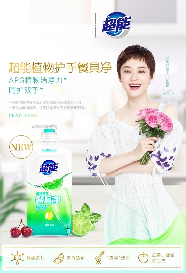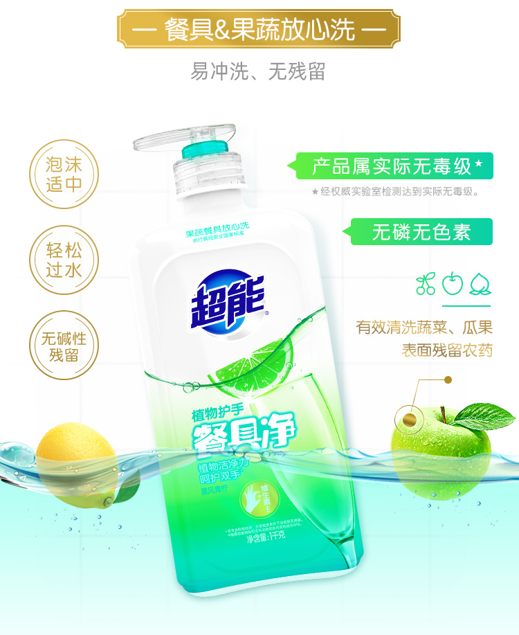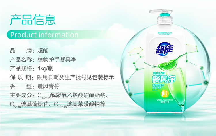 商品名称:超能 植物护手餐具净 洗洁精 1kg (单位:瓶) 灰绿色