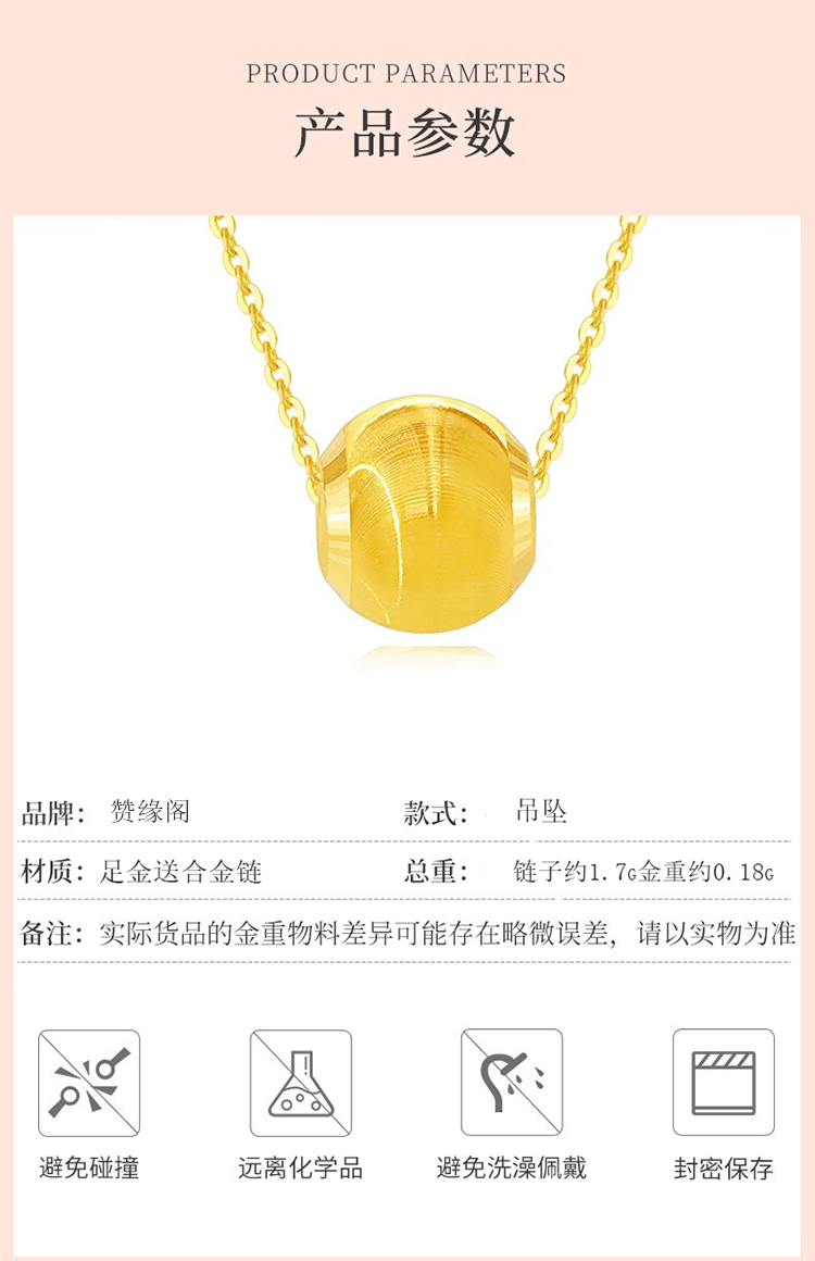 商品名称:赞缘阁黄金足金转运珠吊坠MY009(单位:件) 黄色0.18-0.23g
