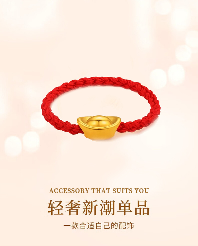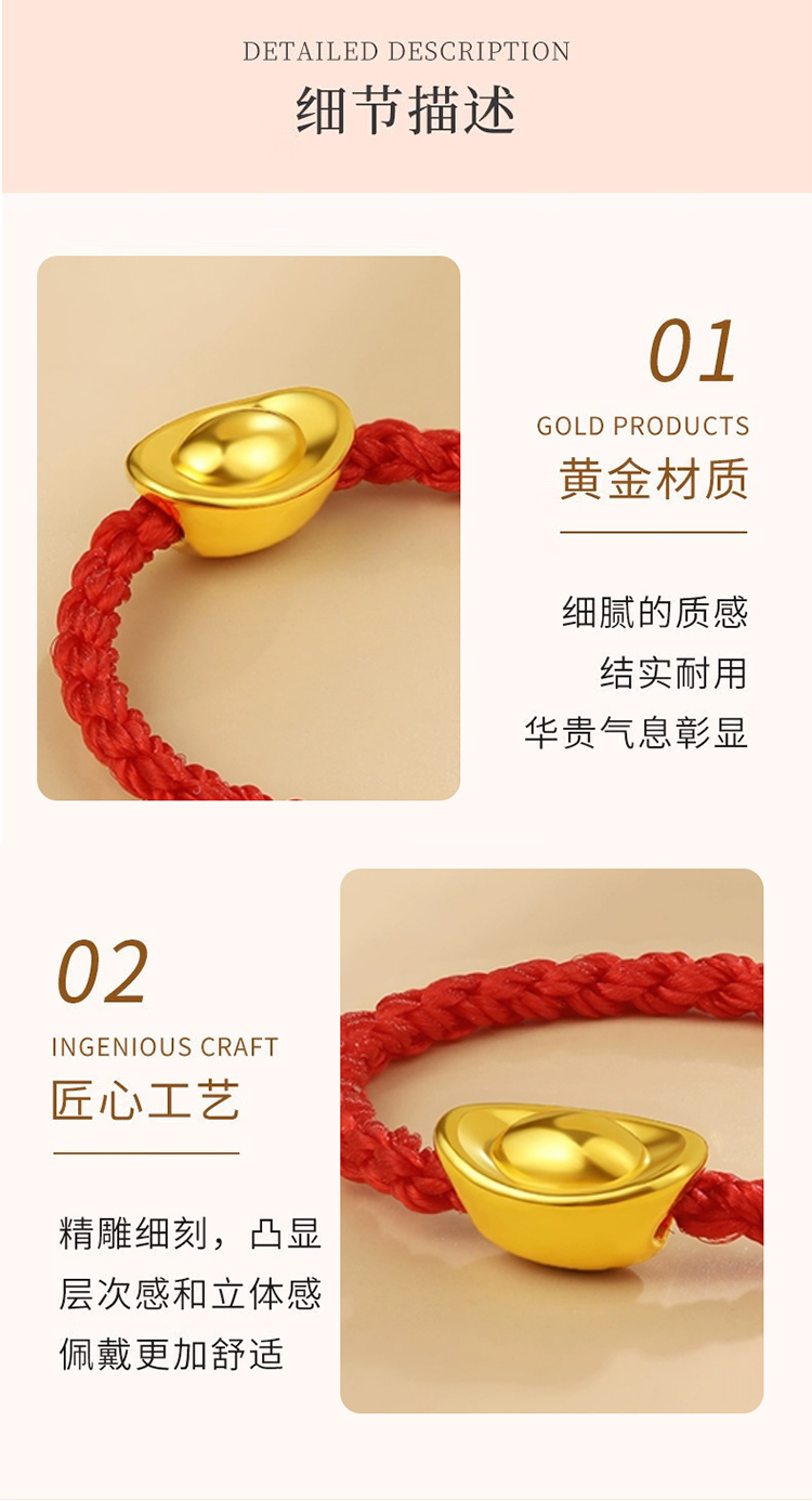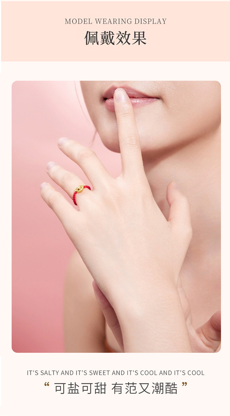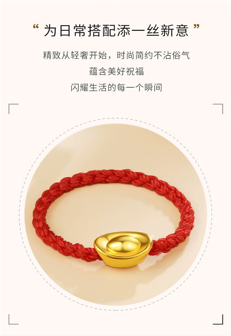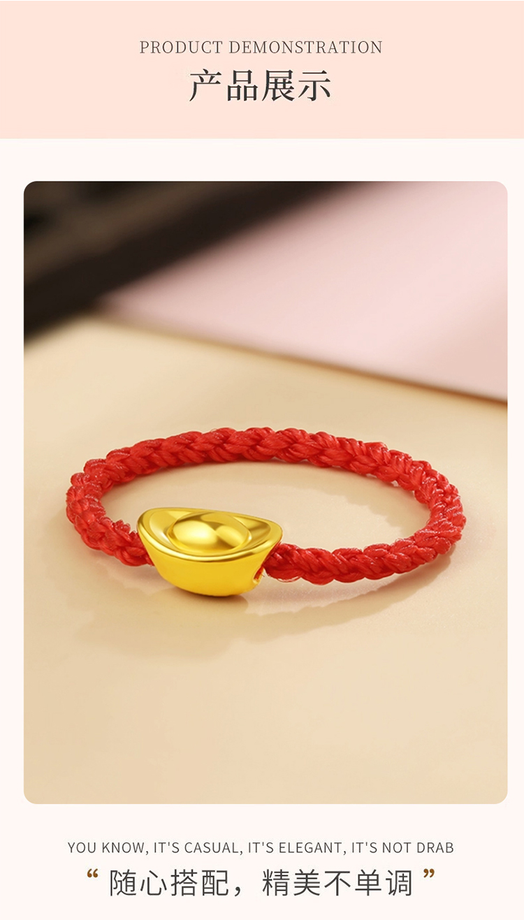 商品名称:赞缘阁 黄金足金招财进宝红绳戒指(单位:件) 黄色-22#0.1-0.13g