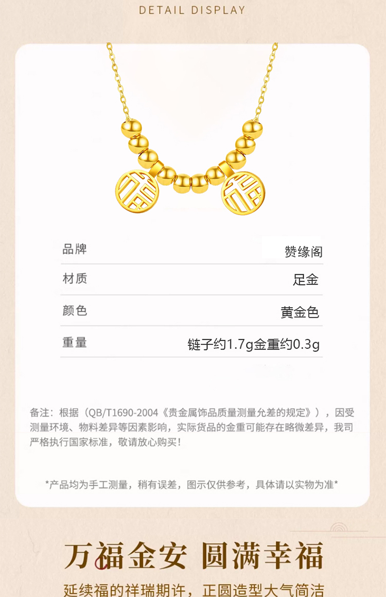 商品名称:赞缘阁 黄金足金双福牌吊坠10ZSF(单位:件) 黄色0.3-0.4g