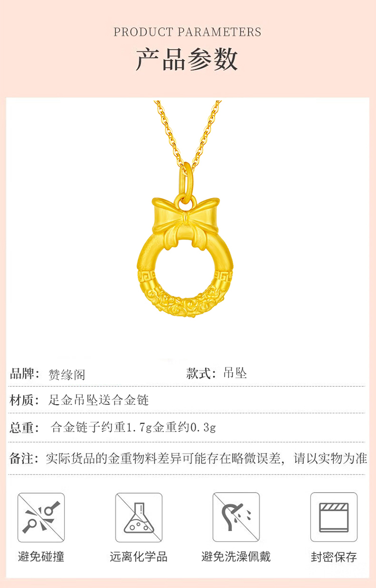 商品名称:赞缘阁 黄金足金蝴蝶结祥云环吊坠XYH03(单位:件) 黄色0.3g