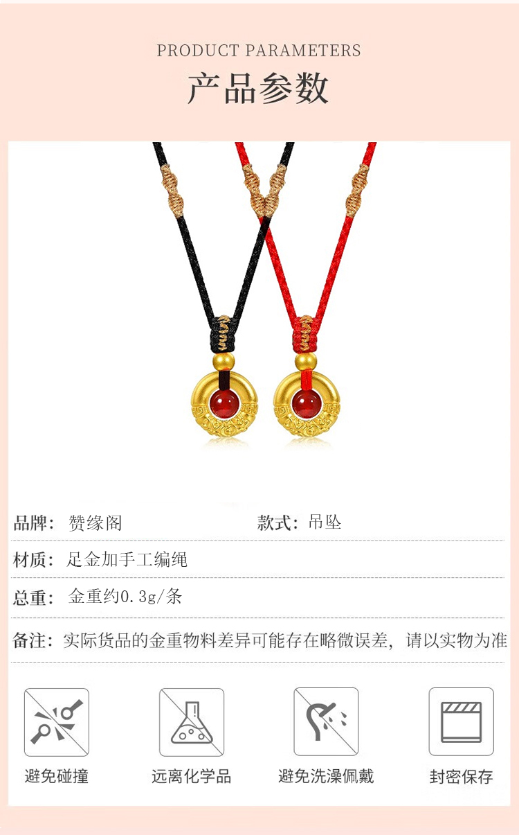 商品名称:赞缘阁 黄金足金平安扣金箍圈吊坠(单位:件) 黑色0.3-0.4g