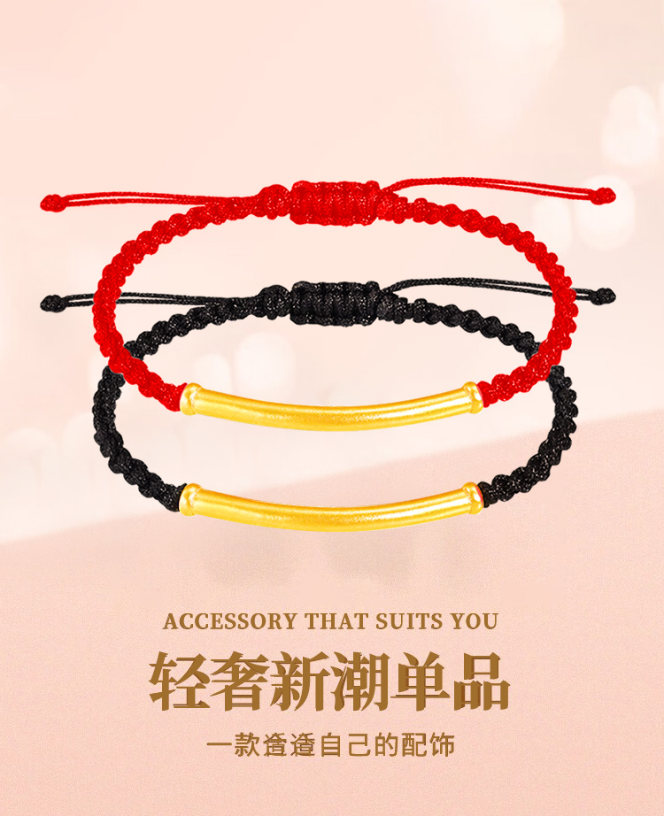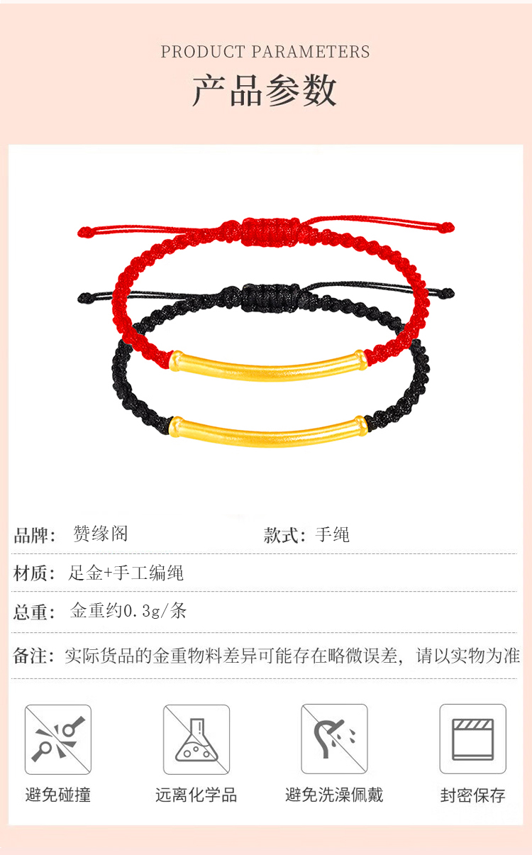 商品名称:赞缘阁 黄金足金微笑管手绳(单位:件) 黑色0.3-0.4g